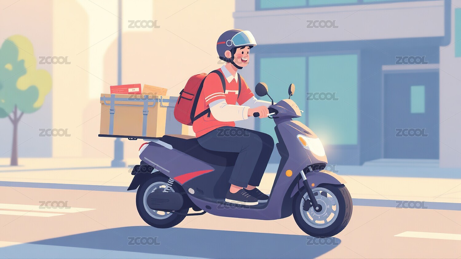 打工人主题快递外卖小哥插画