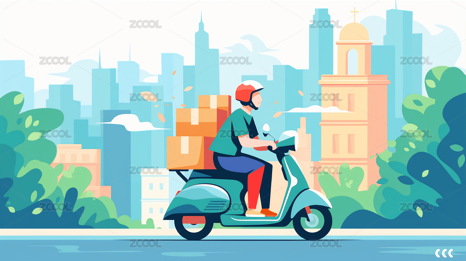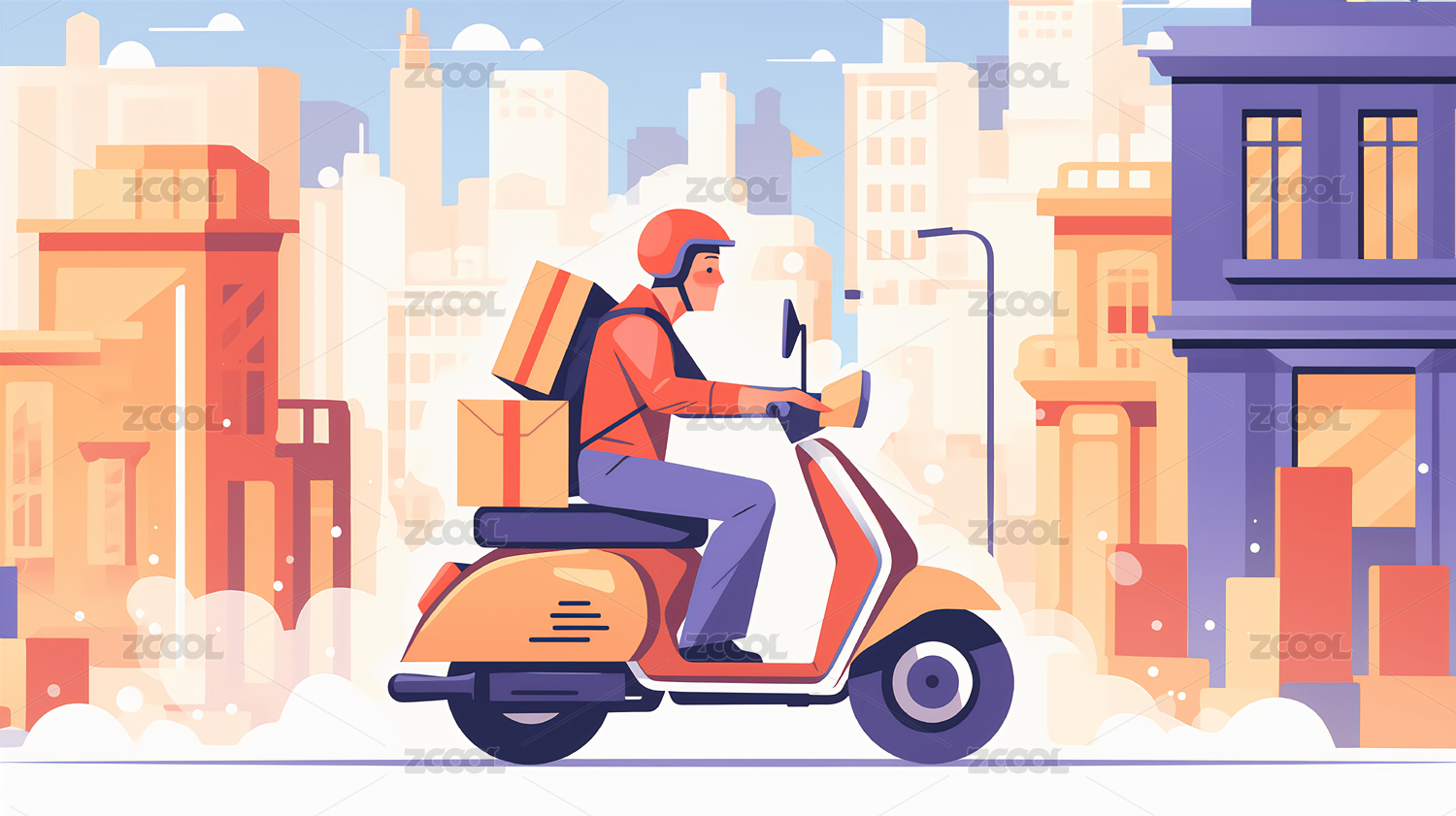 互联网商务购物快递员送货外卖送餐骑行插画