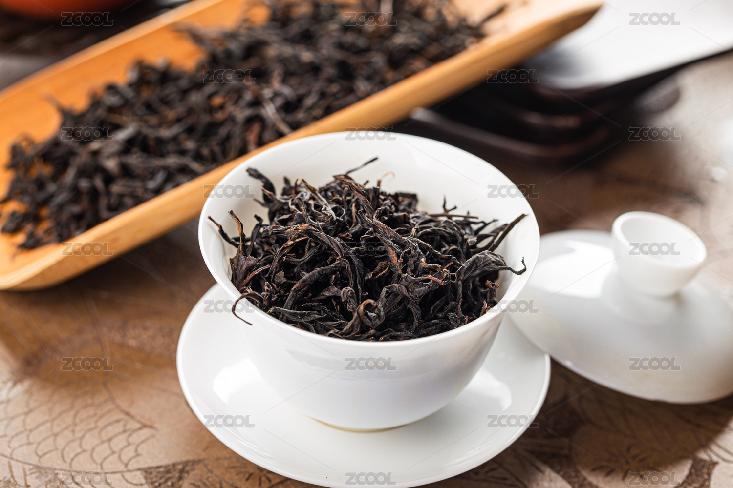 中式背景的茶叶干货