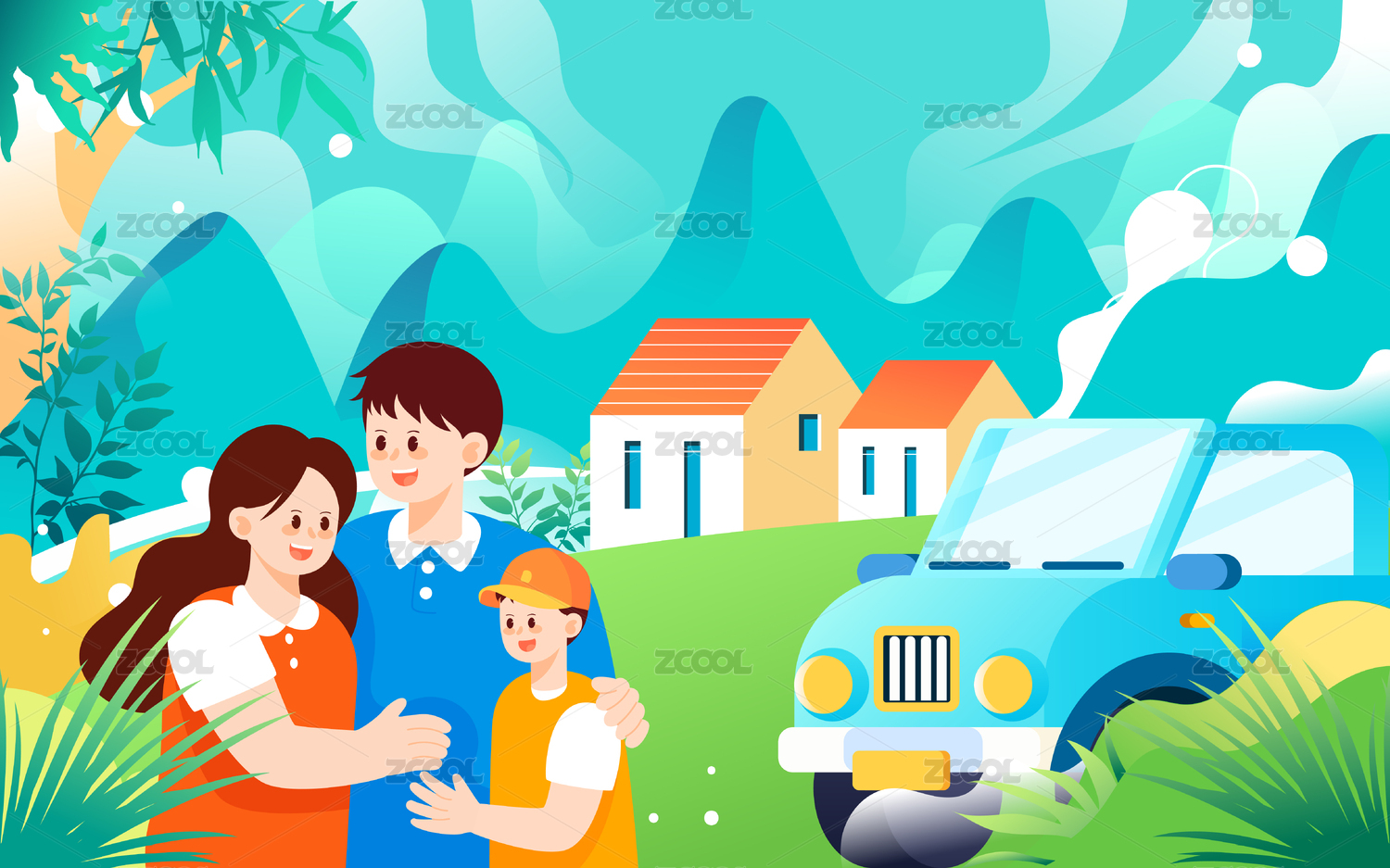 汽车旅游假期自驾游夏令营户外出行放假背景