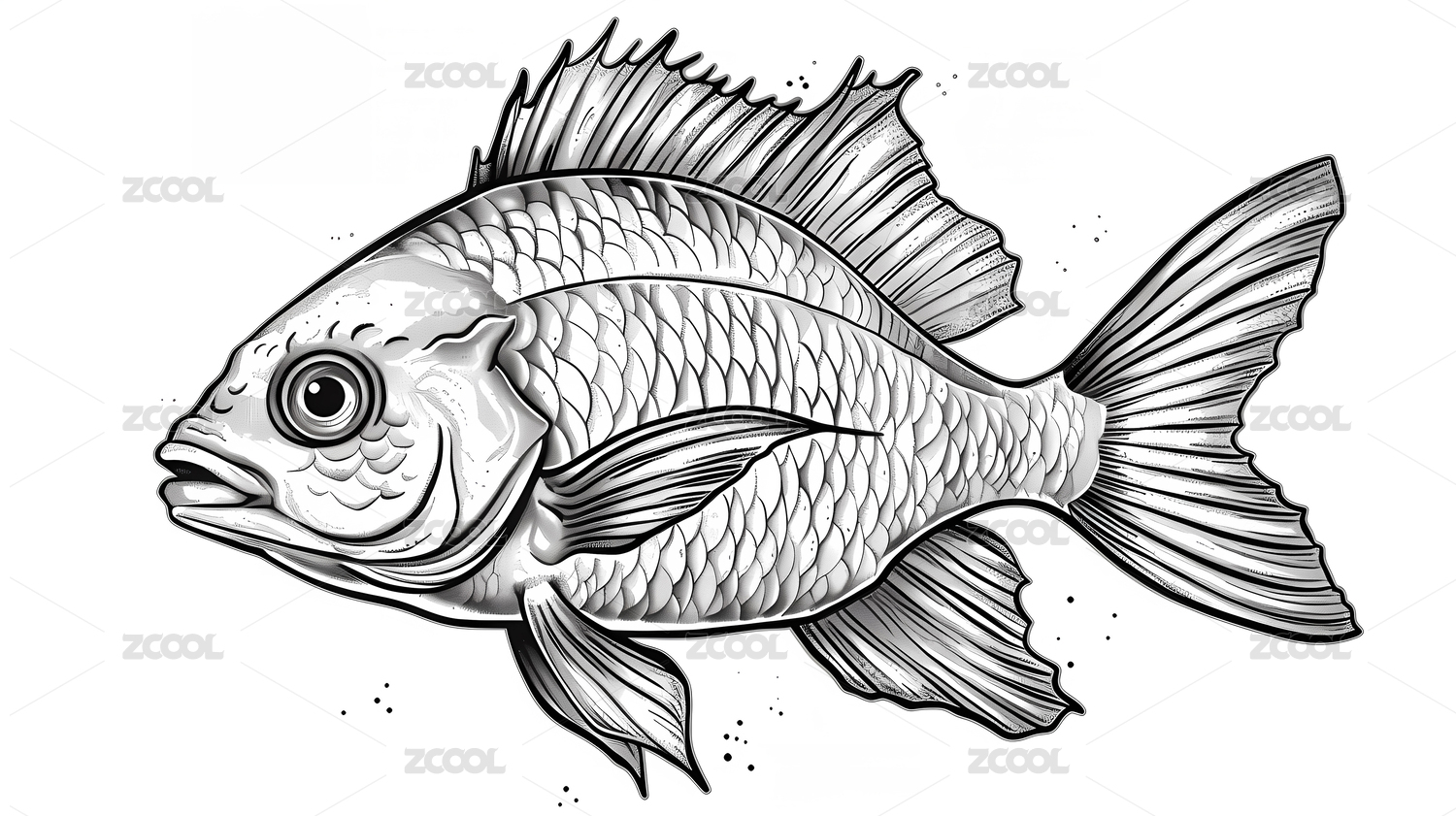 黑白素描鱼类详细插画