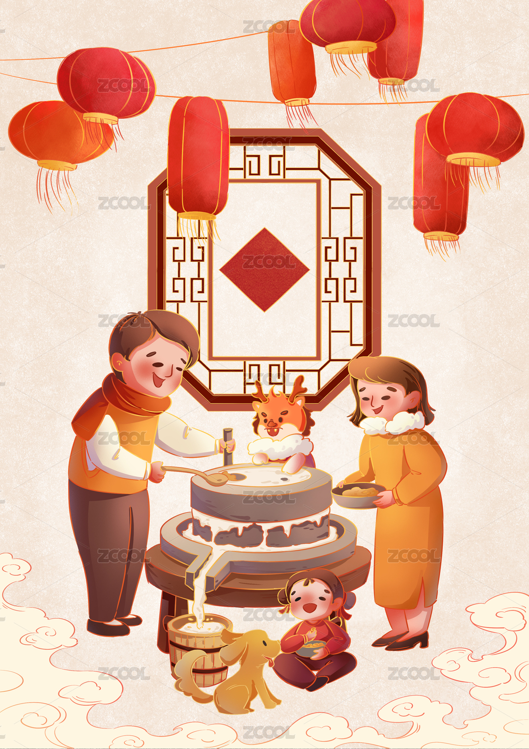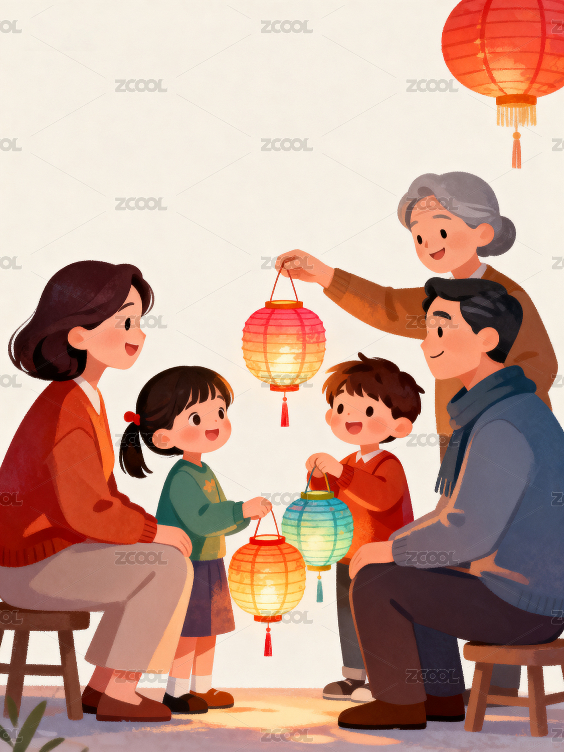 国风,新中式,传统文化,插画,中国风,年俗,民俗,看灯会,灯会,元宵节