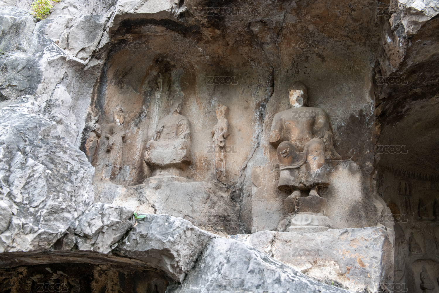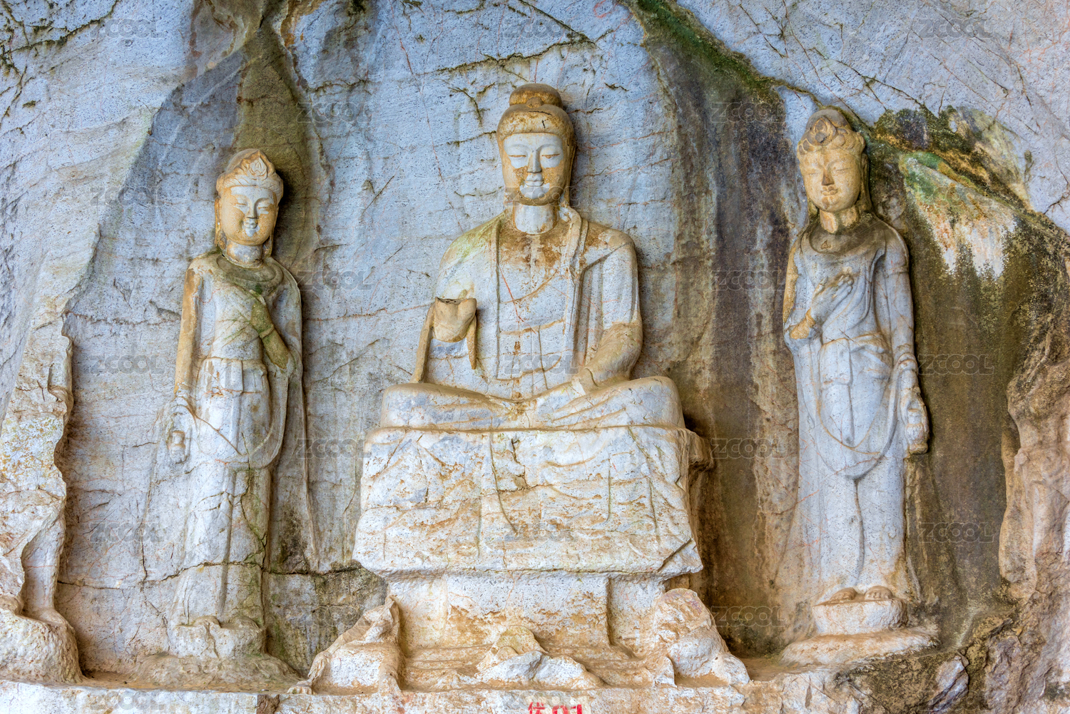 浙江杭州飞来峰岩壁上的石刻佛像群