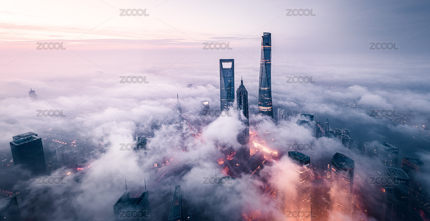 上海城市风光陆家嘴建筑地标平流雾全景图