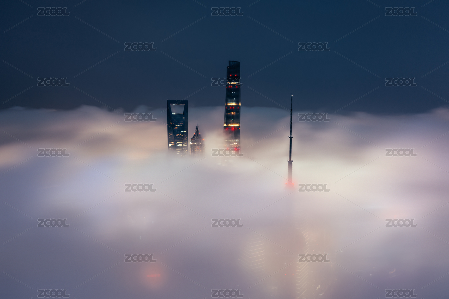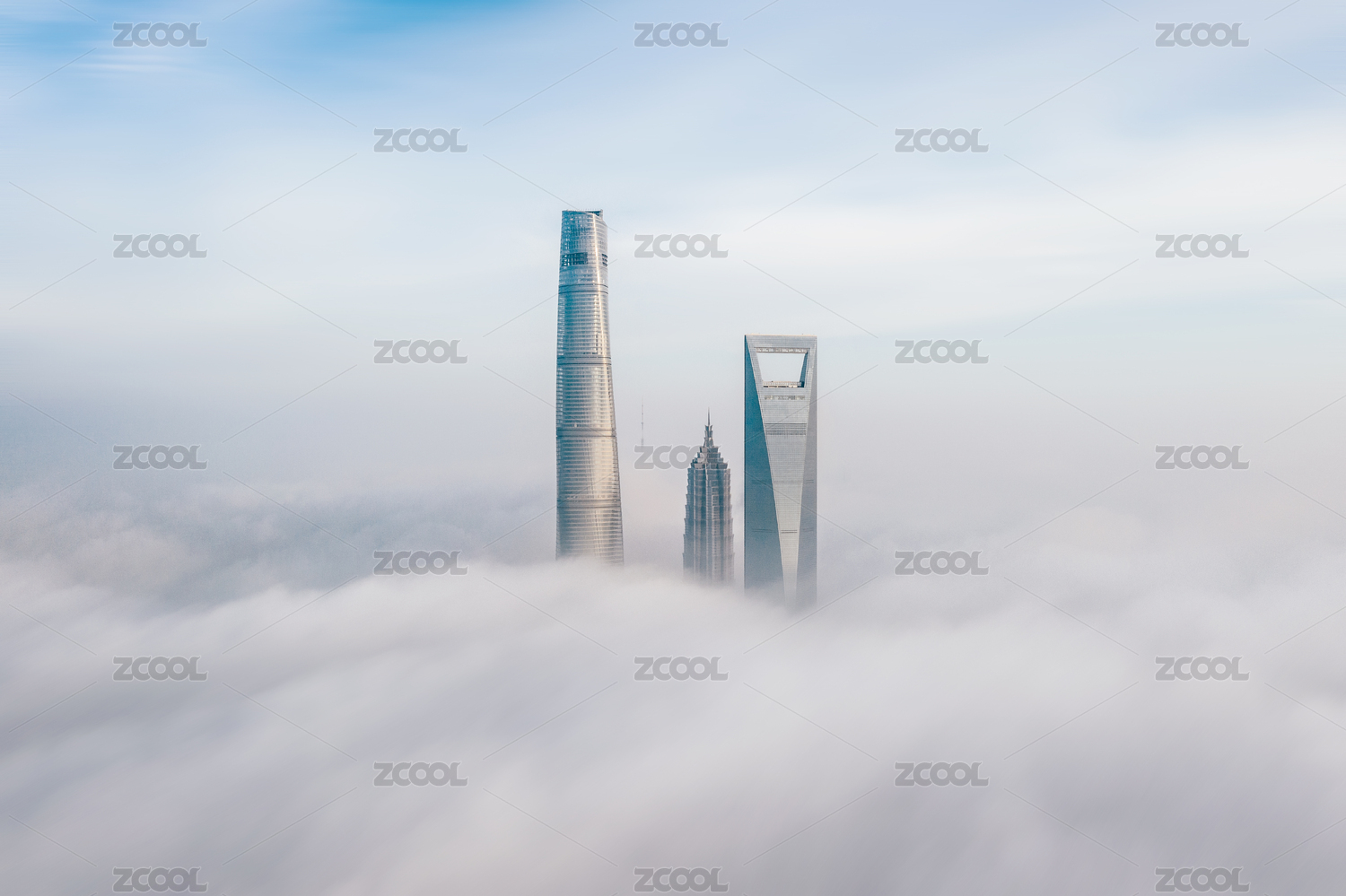 上海地标建筑摩天楼云海平流雾全景图