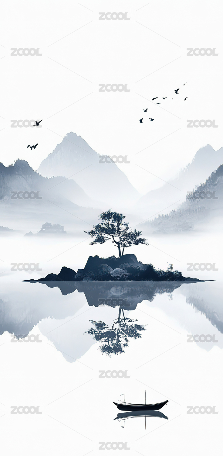 新中式风景山水插画