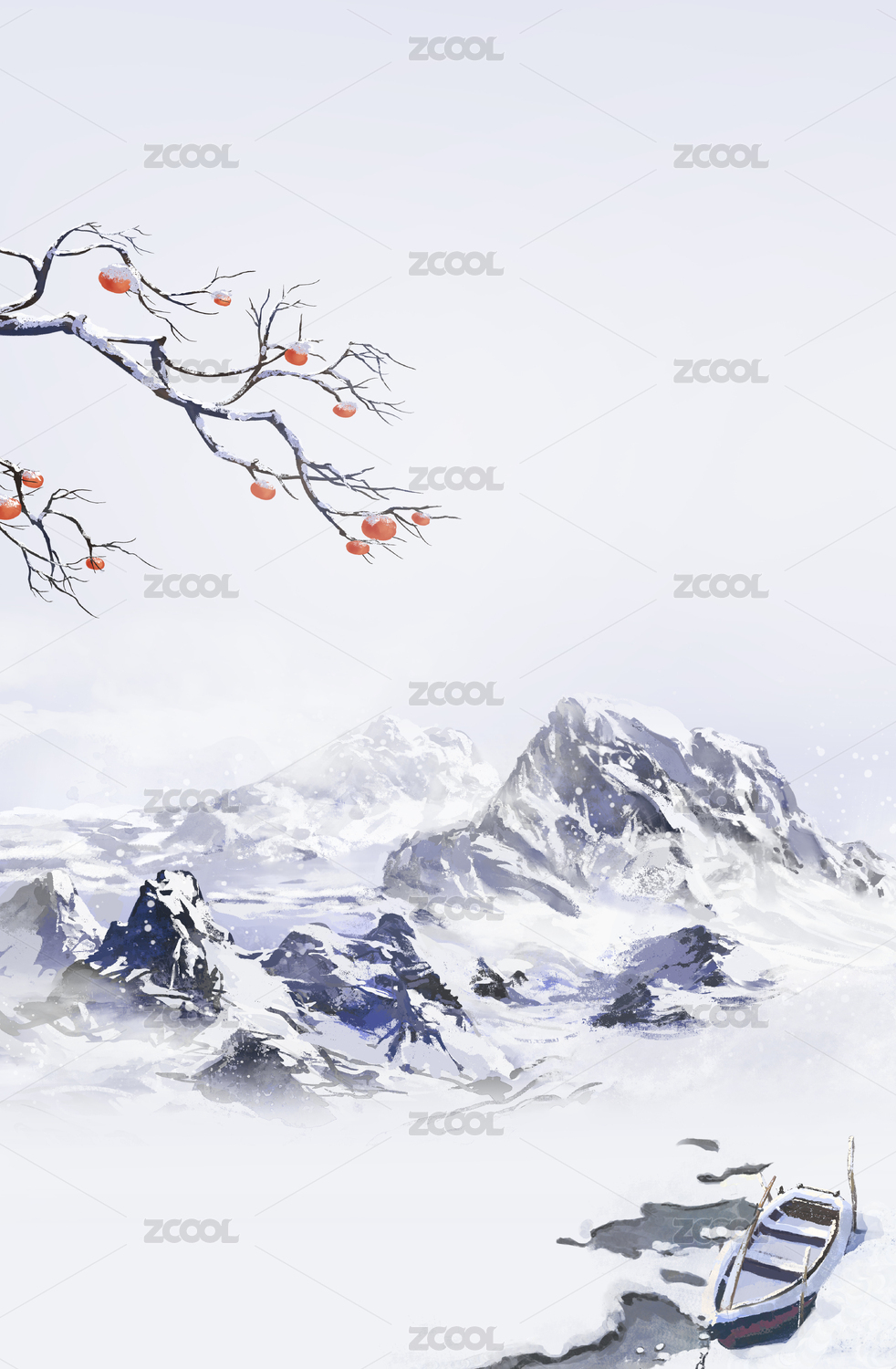 意境冬天雪景节气风景竖版插画背景