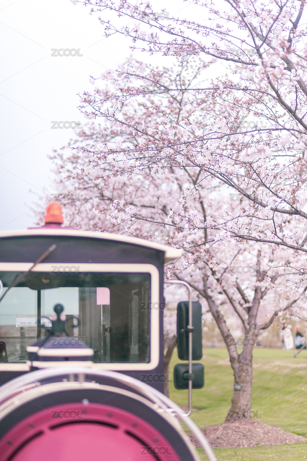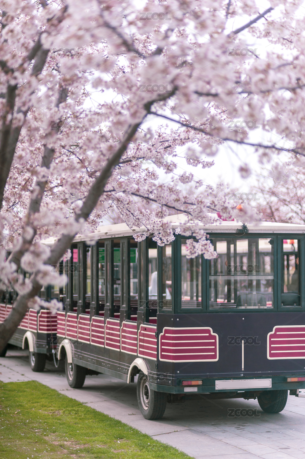 小火车,天空,樱花林,春天,浪漫,粉色,开往春天,樱花,自然,无人