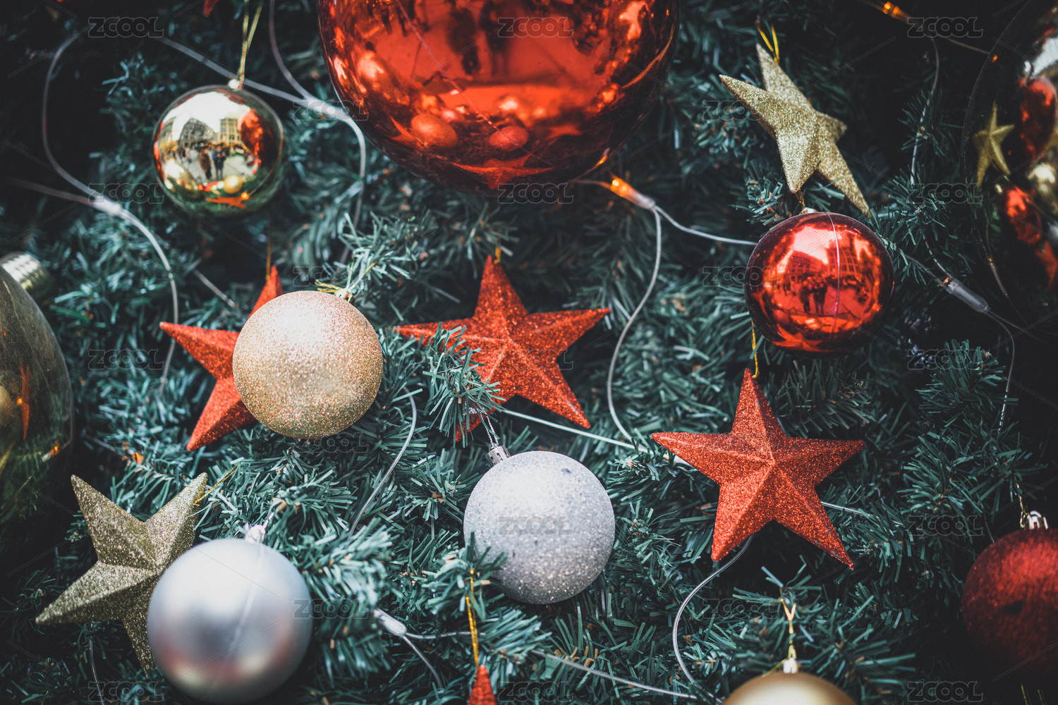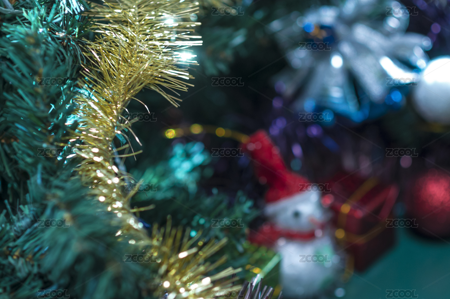 圣诞小装饰 金色挂件 白色挂件 绿色松树