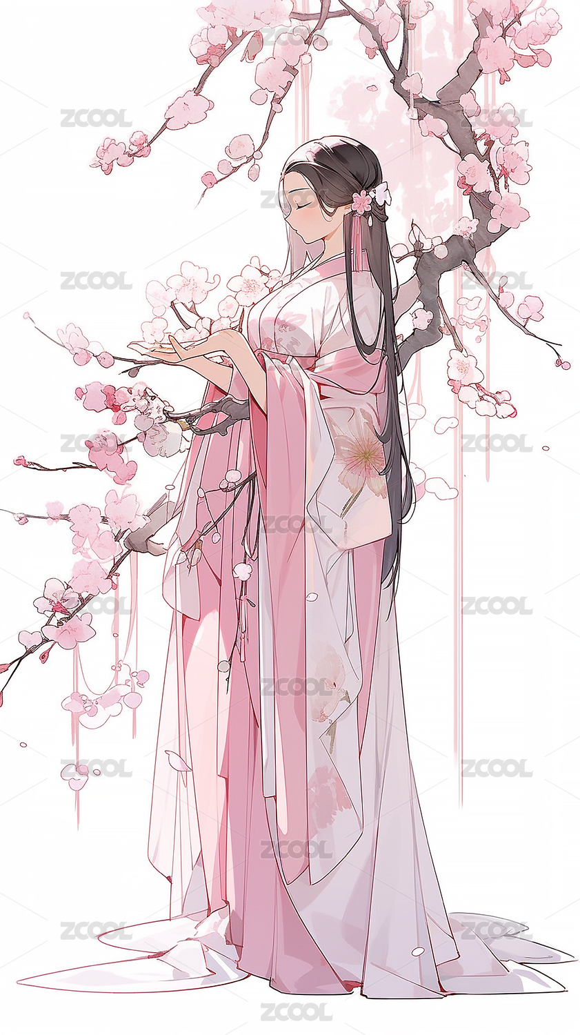 樱花环绕的古典美人