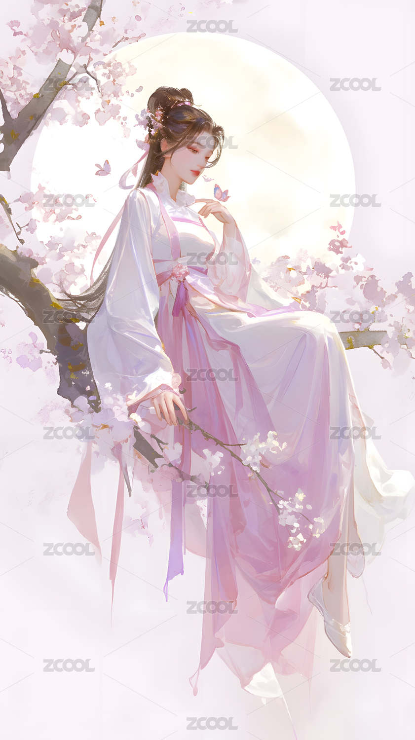 古风女子樱花图