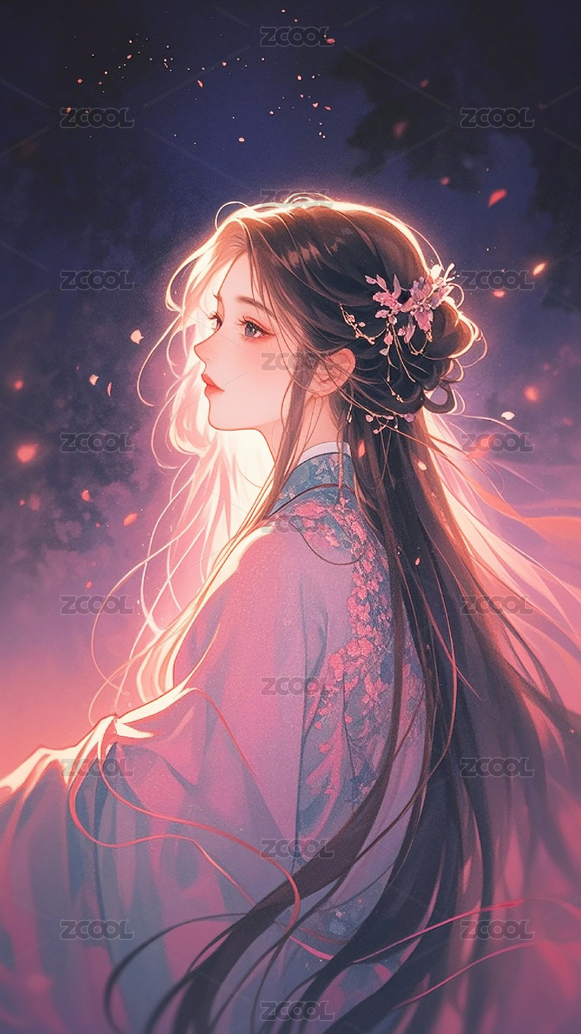 花饰长发动漫少女