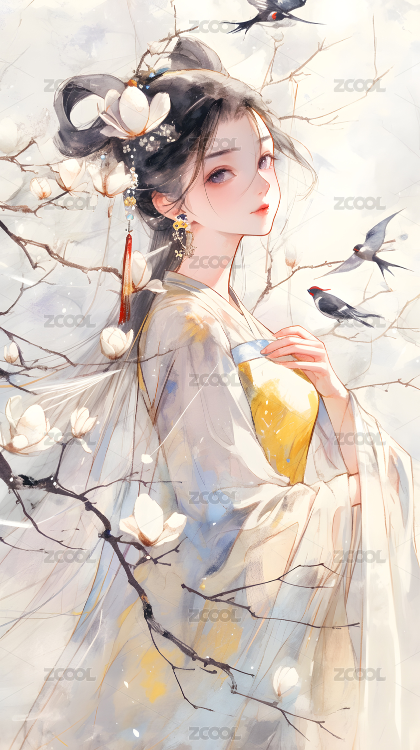 水墨古风女子插画唯美意境