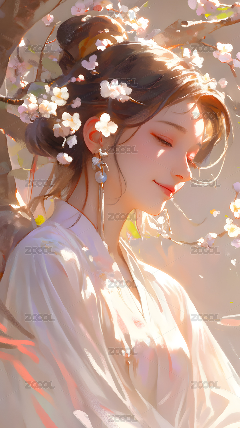 古风女子倚花枝衣袂飘飘