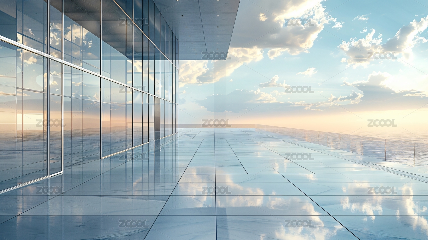 抽象插画风商业写字楼,城市天际线玻璃幕墙