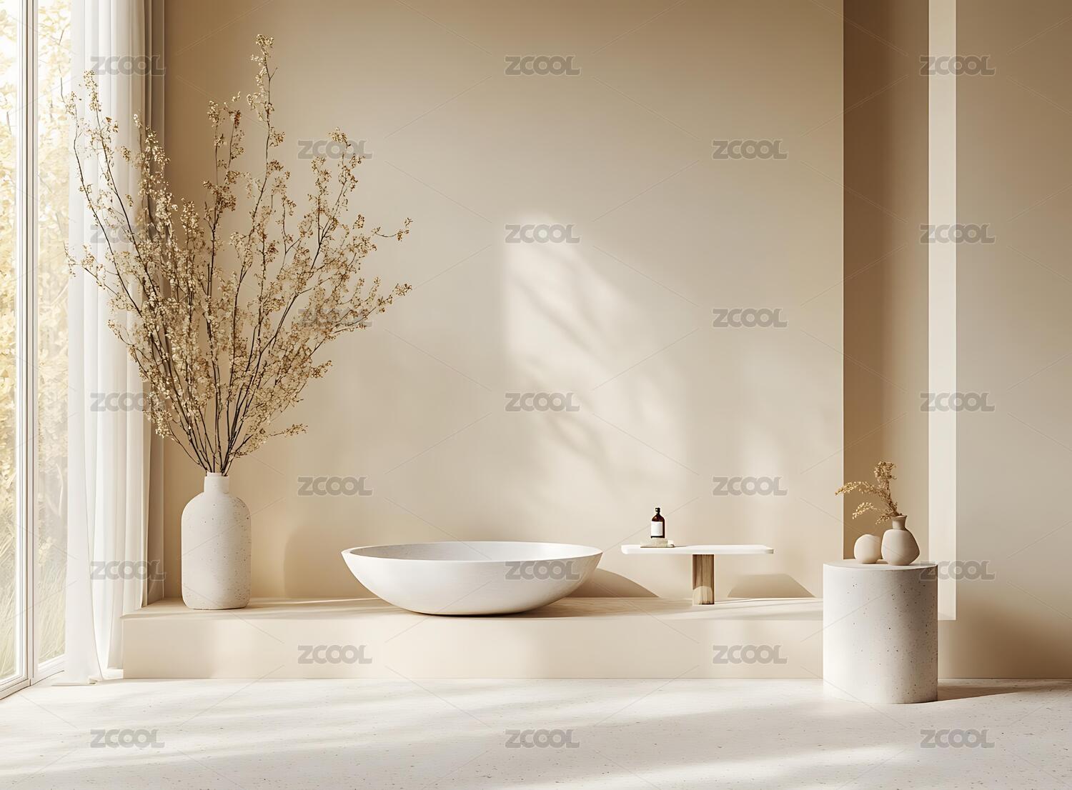 极简浴室设计与独立式浴缸