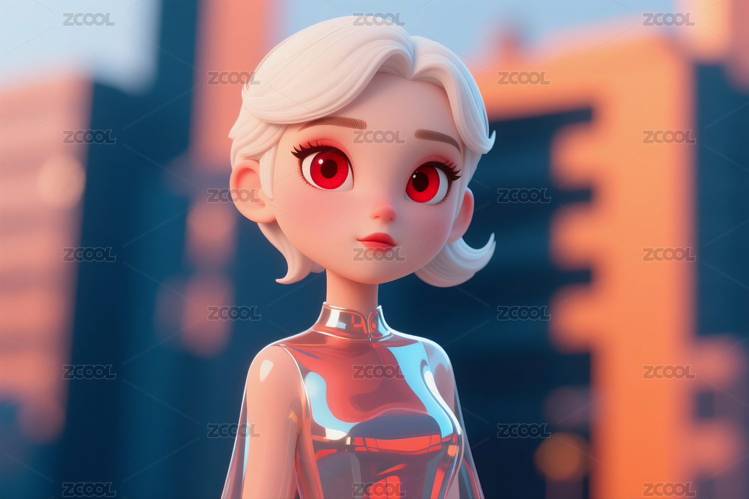 卡通,3d,城市,动漫,发卡,粉红色,建模,可爱,蓝色眼睛,美丽