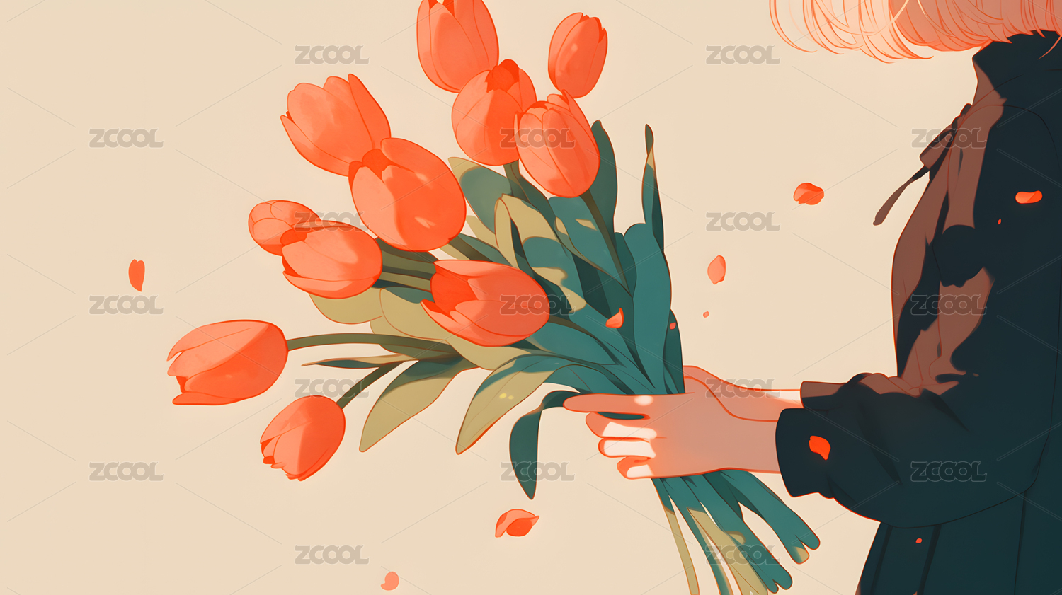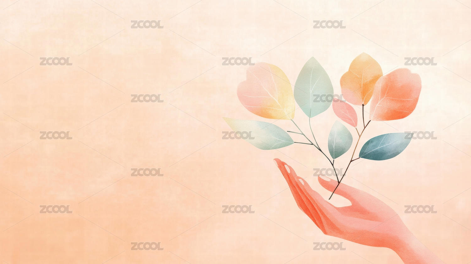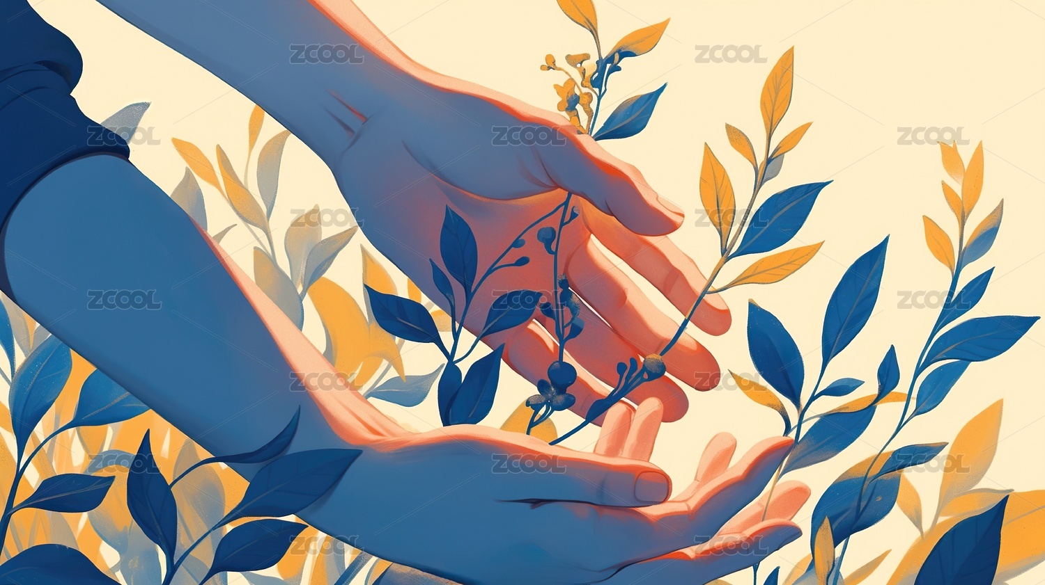 秋天一只举着的手拿着红叶枫叶扁平插画绘画