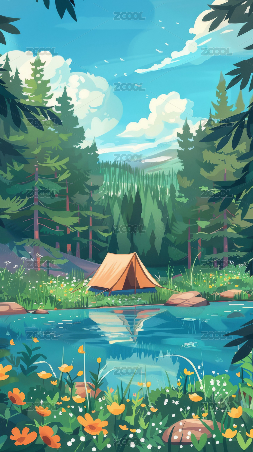 无人,户外,天空,AI数字艺术,旅行,自然,风景,帐篷,露营,高山