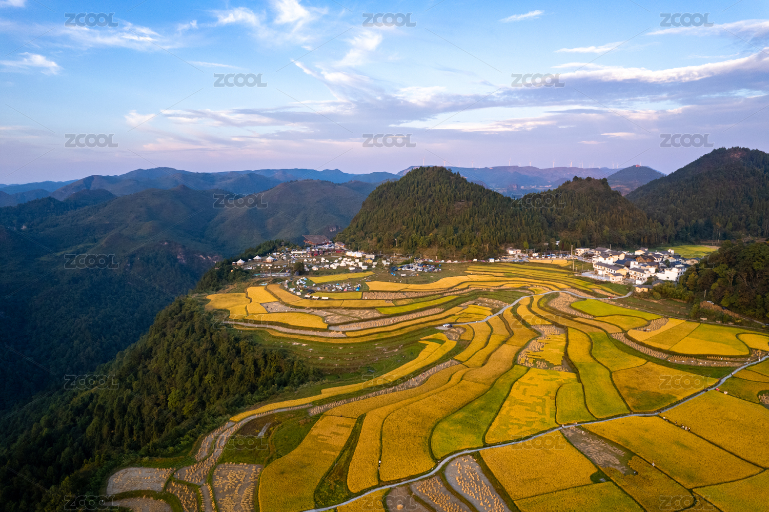 农村结满稻谷的梯田