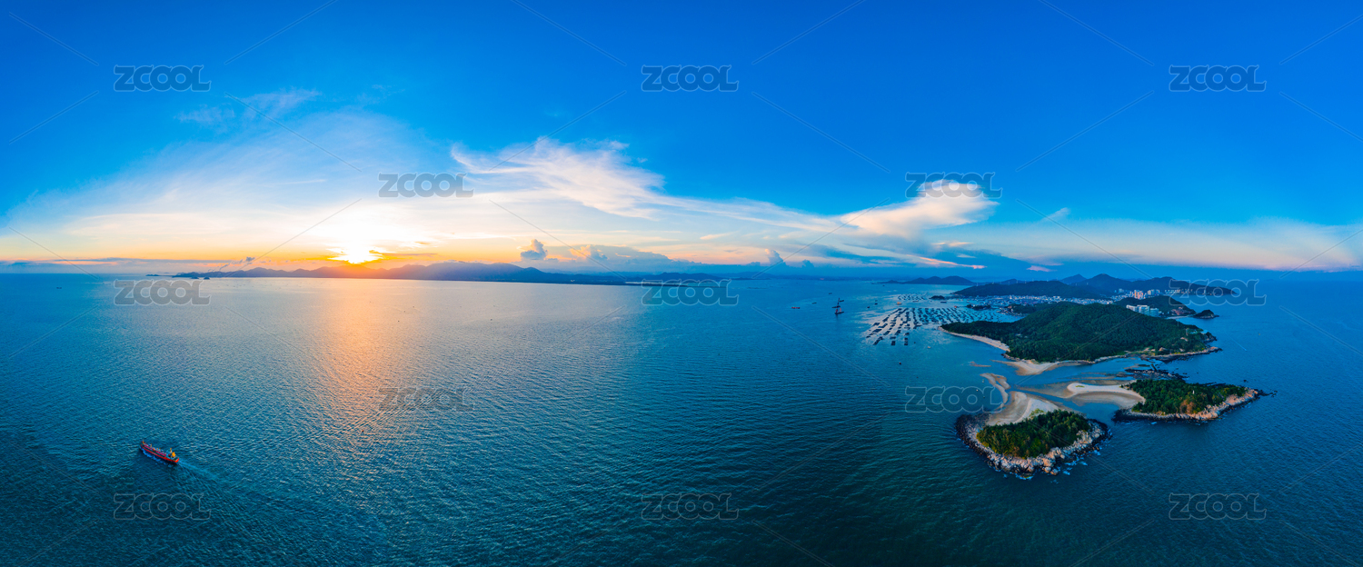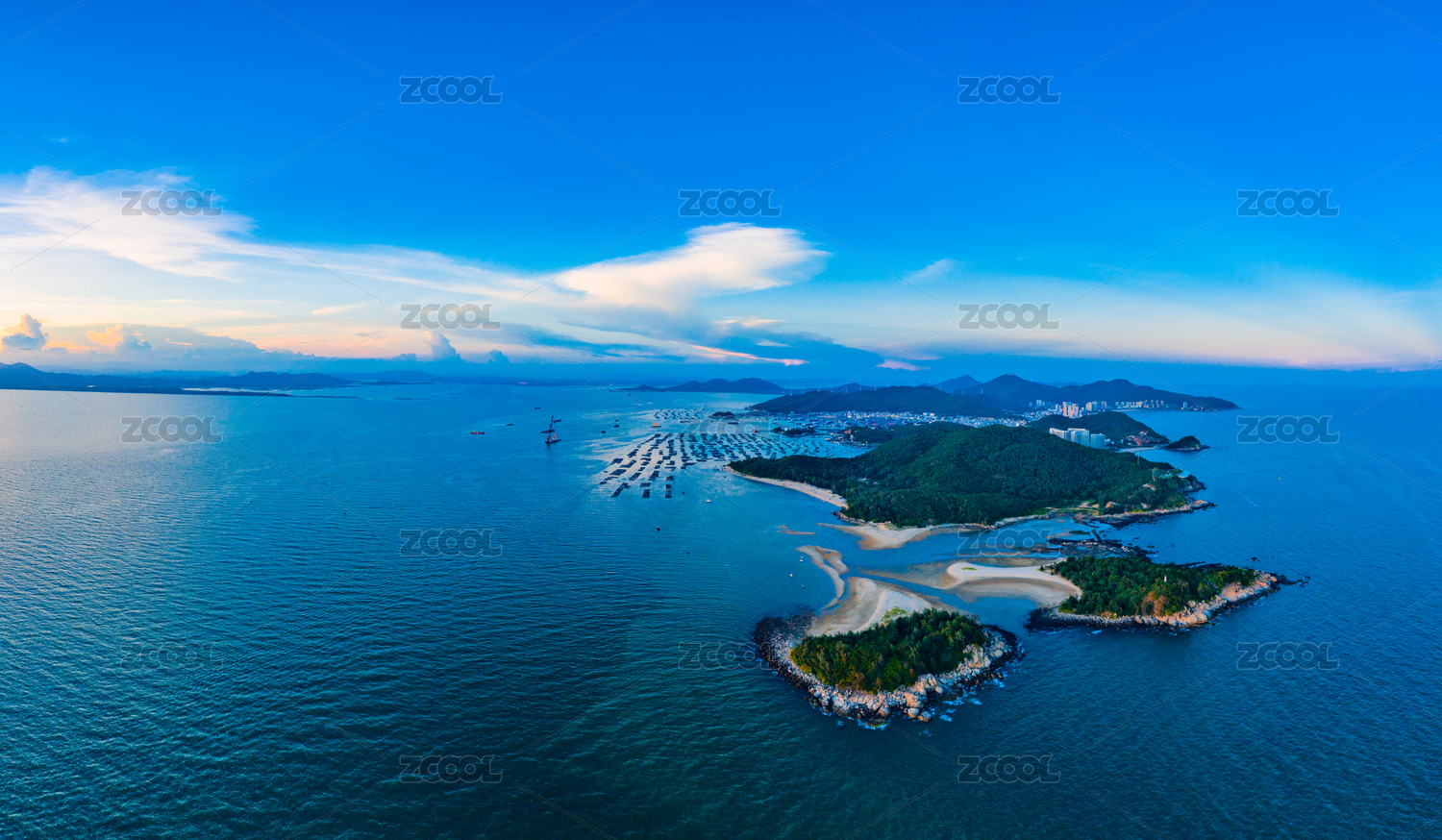 珠海伶仃洋日出桂山岛海岛旅游航拍全景图