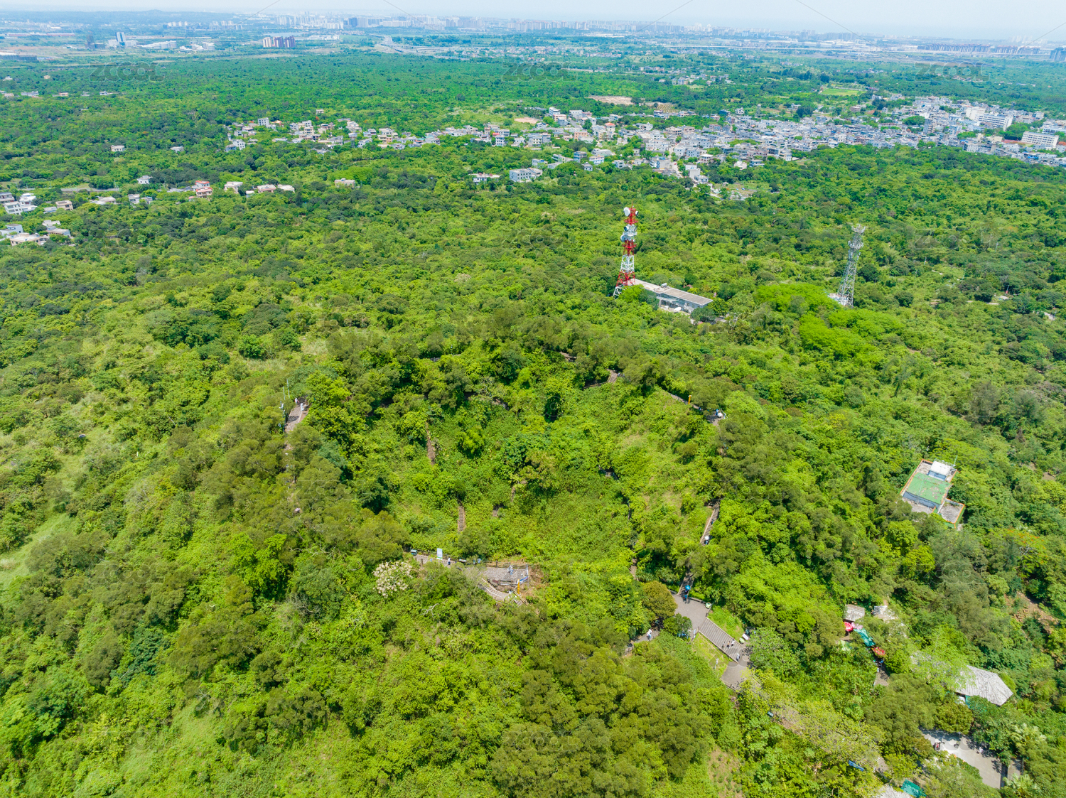 航拍海南文昌铜鼓岭热带沿海峰岭山地风光