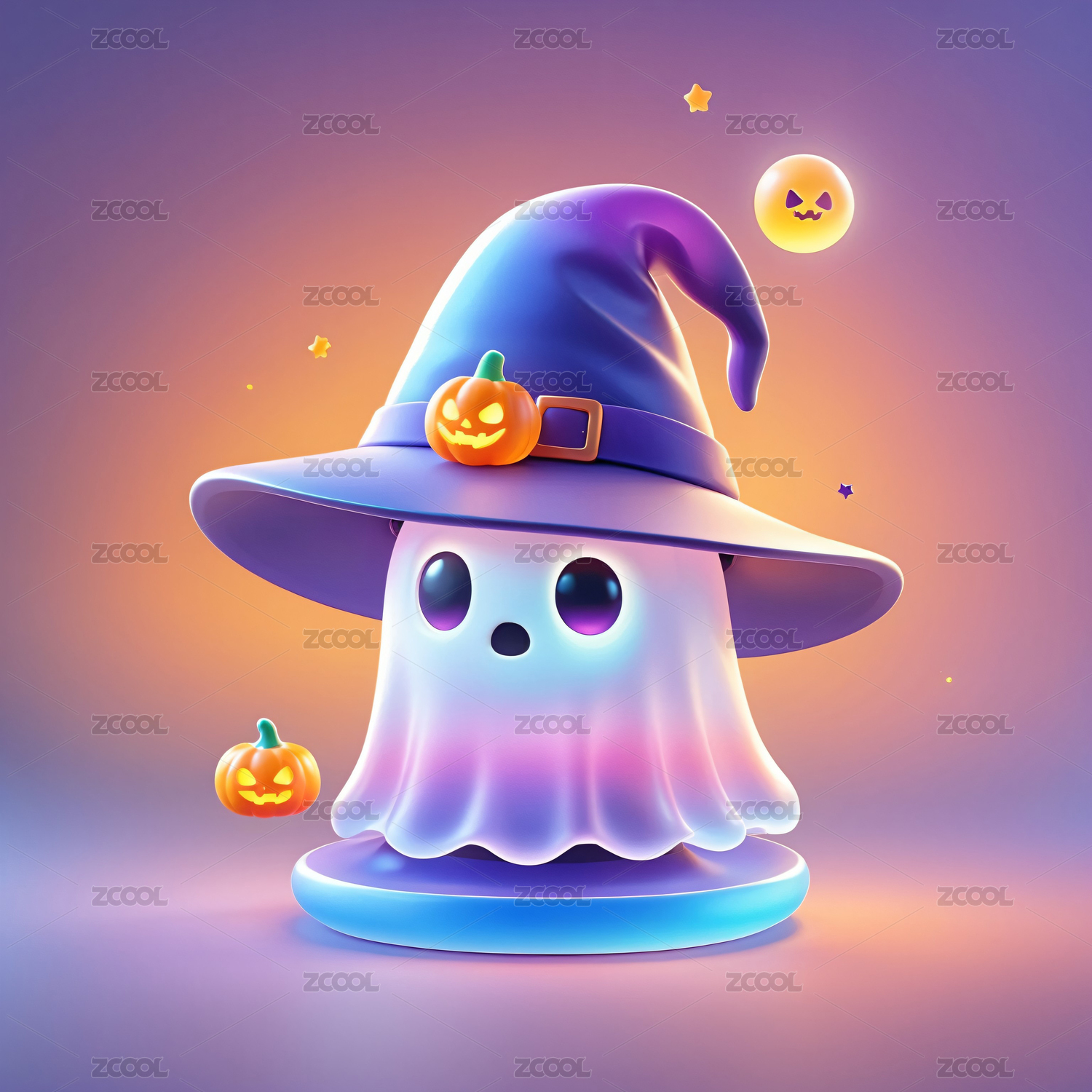 万圣节,白色,幽灵,鬼怪,巫师帽,南瓜,3D,卡通,玩偶
