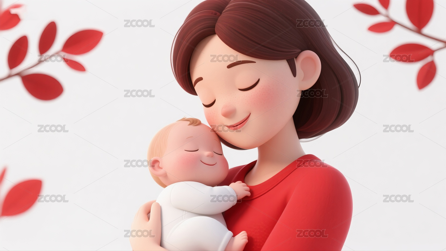 三维,3D,插画,剪纸风格,女性,粉色,母爱,温馨,怀抱,母婴