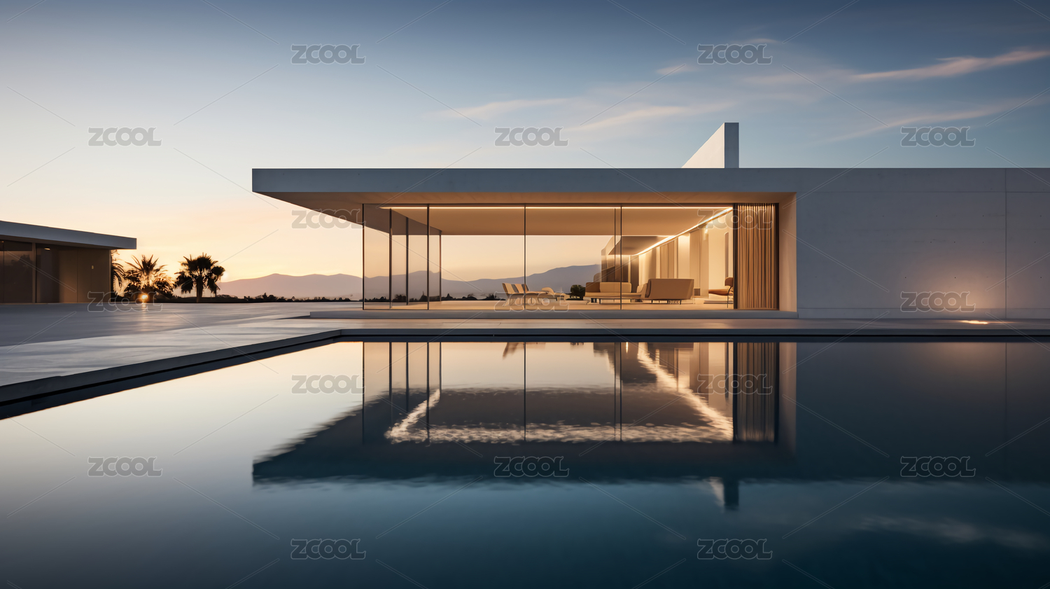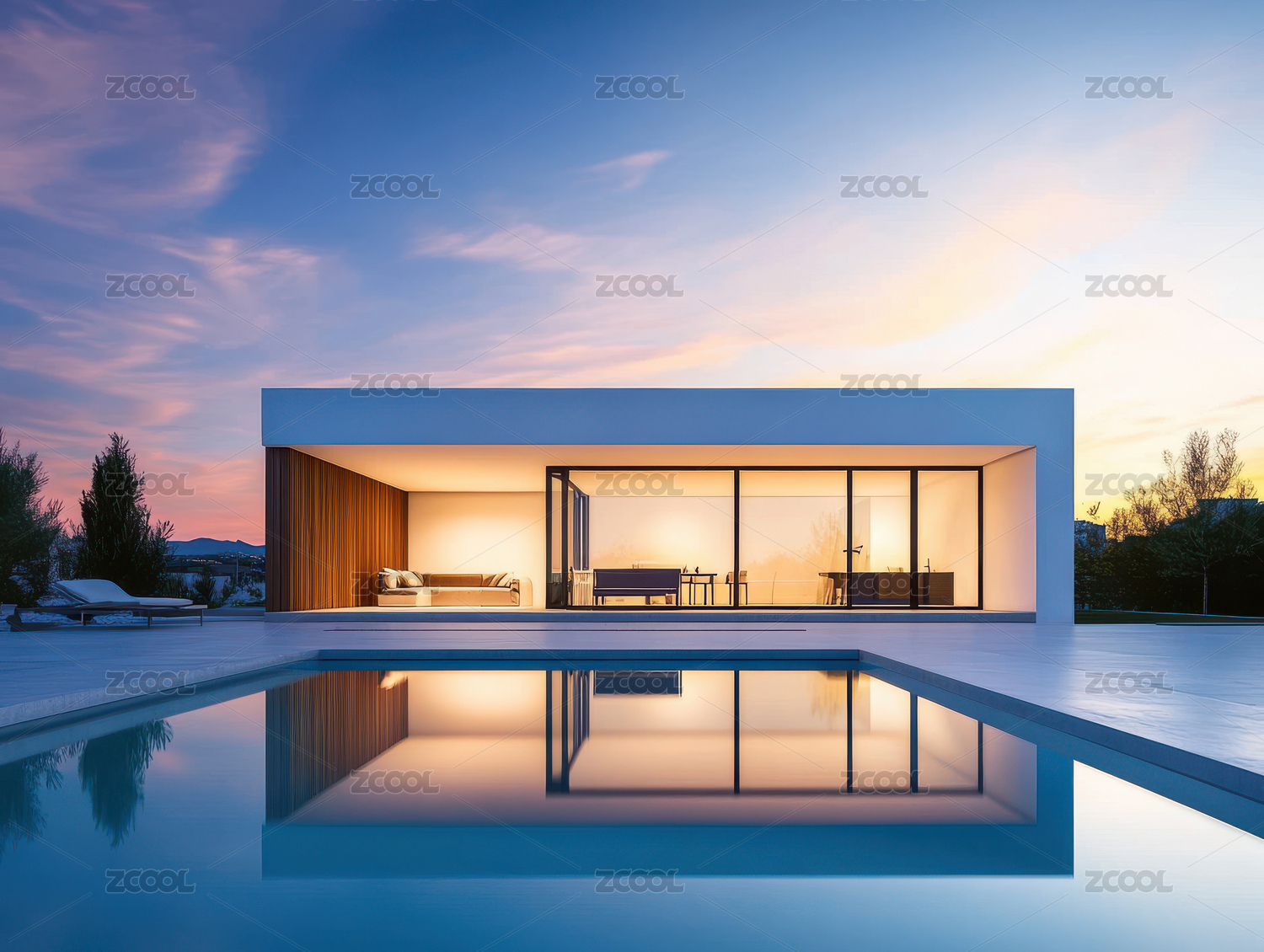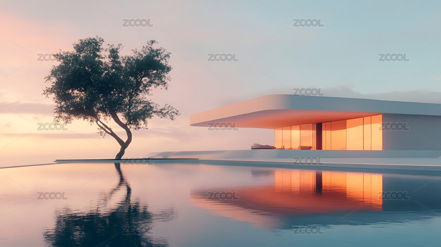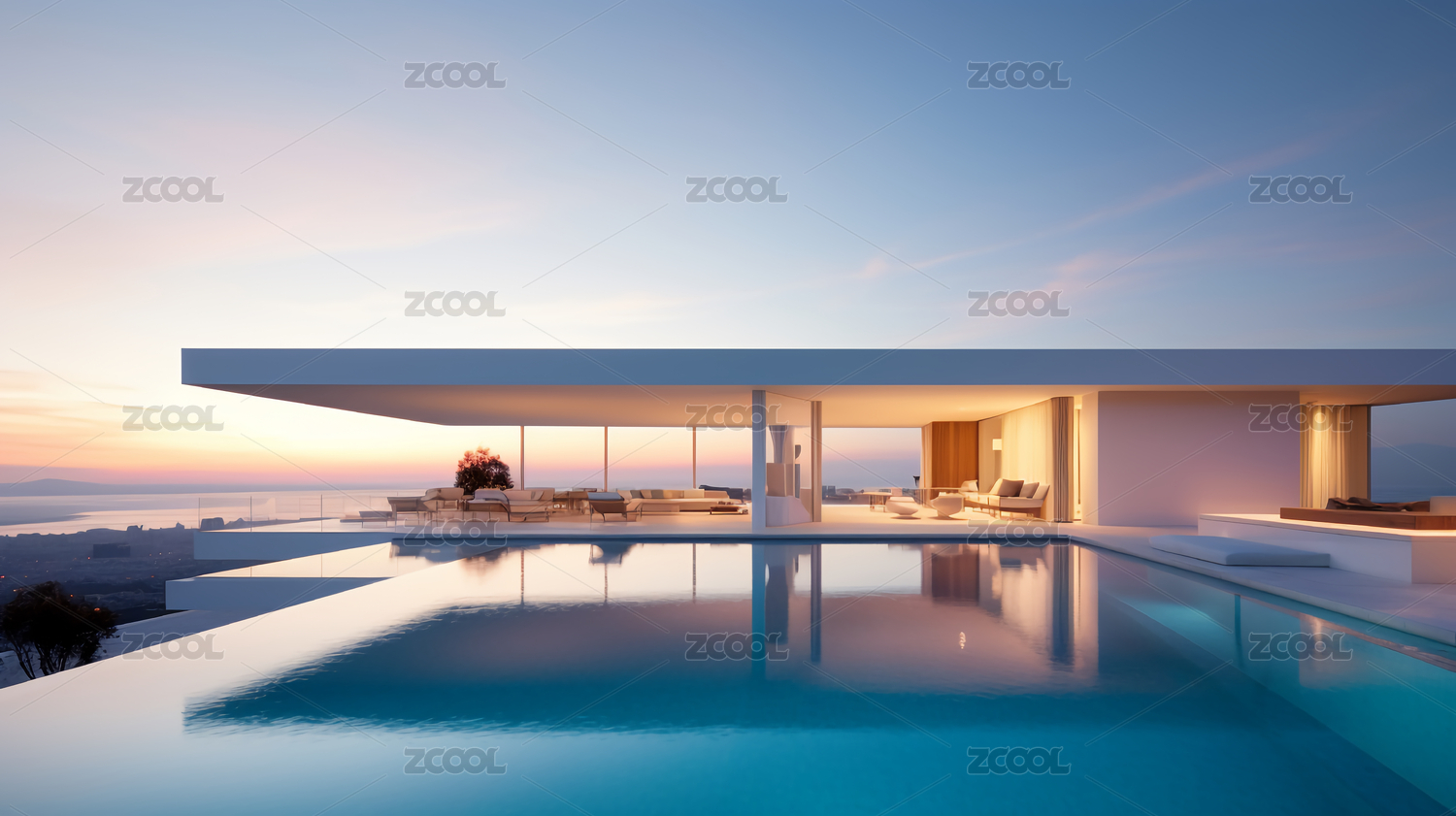 现代,建筑,室外,设计,酒店,餐厅,白色,插画,别墅,简约