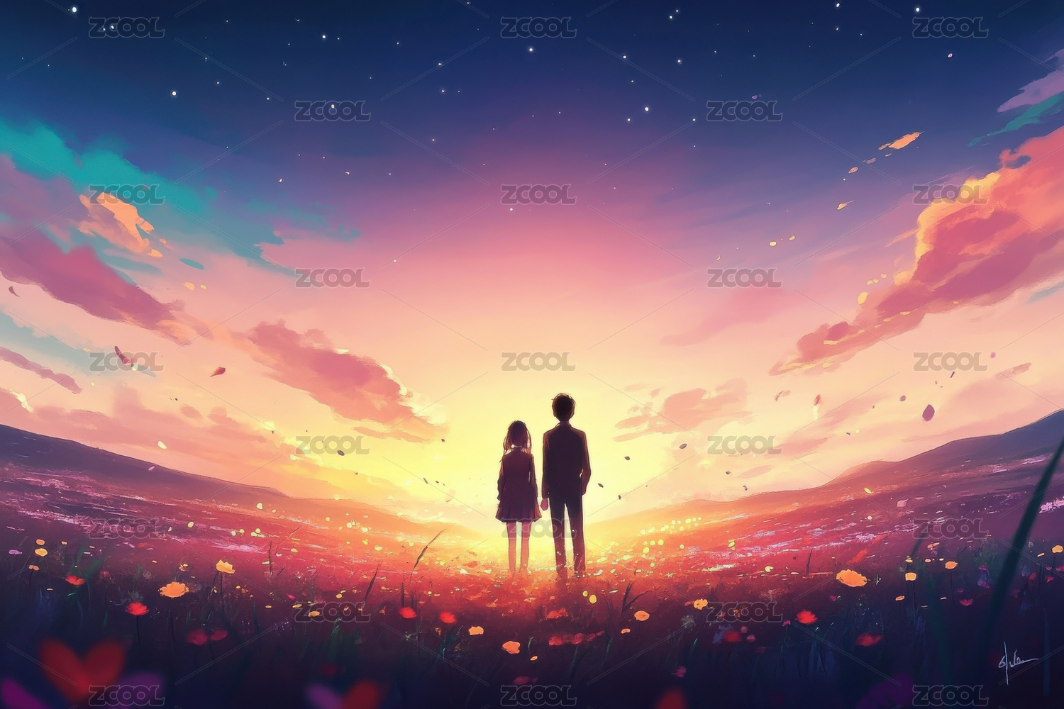 自然户外日系卡通漫画清新治愈唯美AI数字