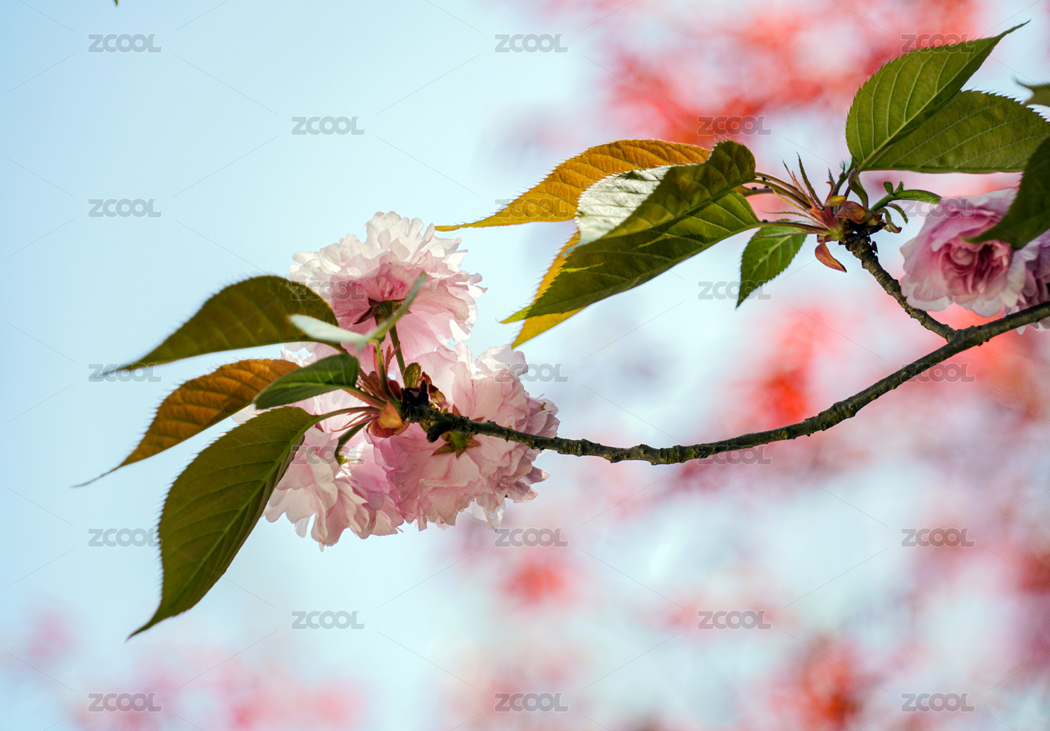 春天 ,公园里盛开的迎春花 樱花 桃花等