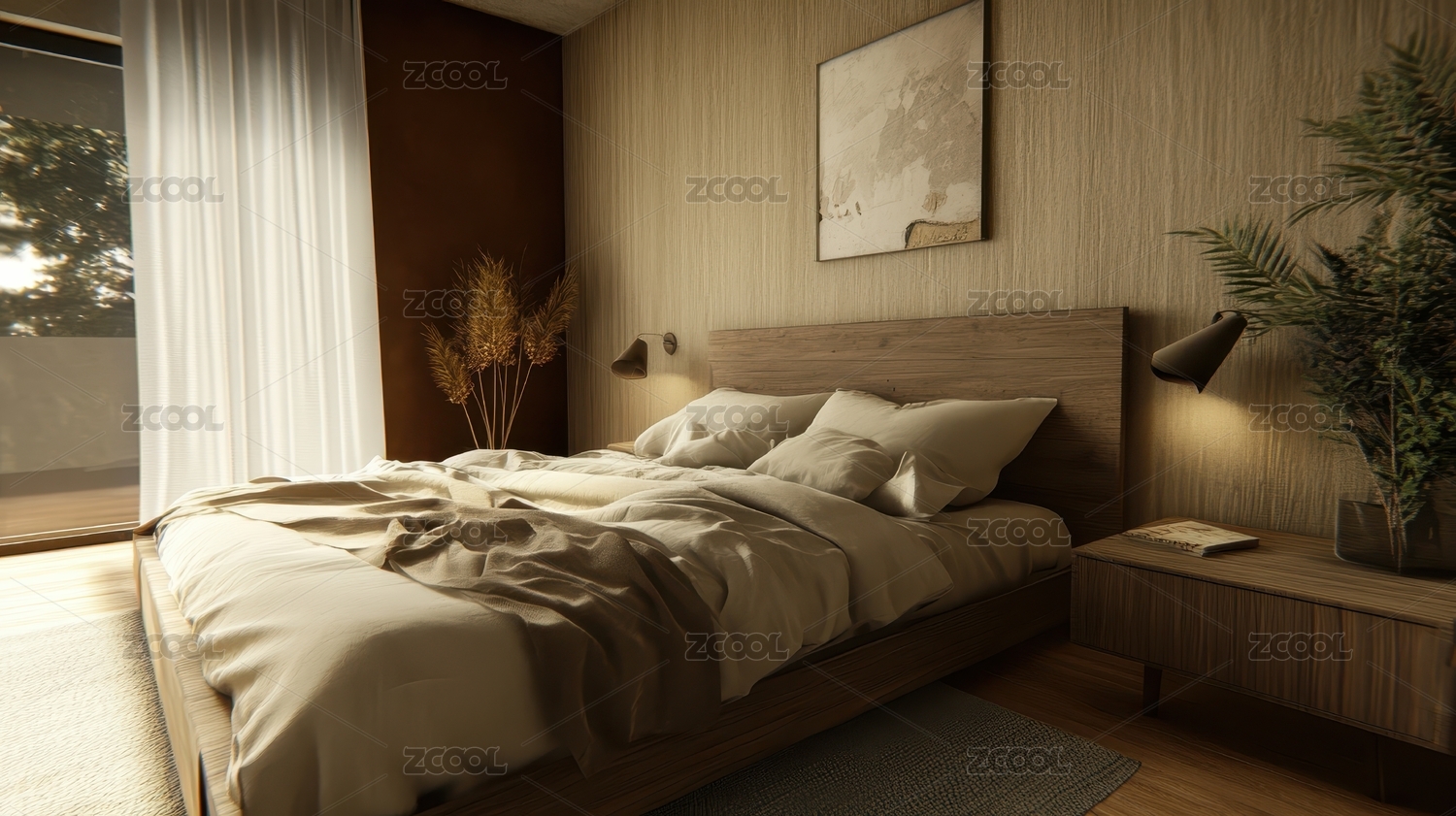 木质,设计,舒适,宁静,自然,家居,自然光,简约,木地板,植物