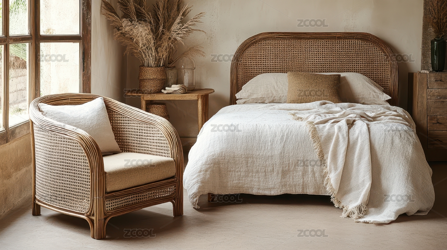 藤编,自然光,简约,温馨,舒适,棉麻,宁静,家居,休闲,卧室
