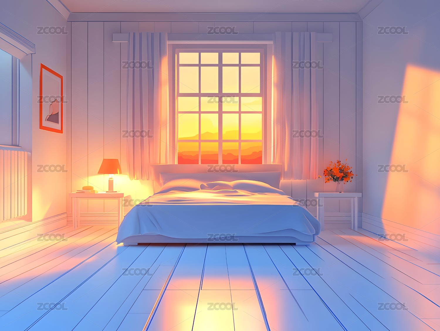 世界睡眠日卧室床睡眠休息放松舒适卡通背景