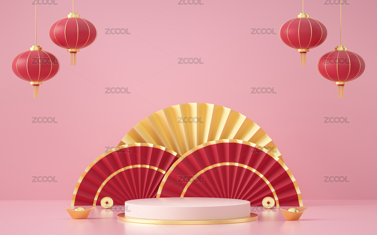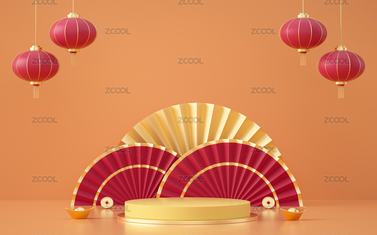 产品展台,传统,古典风格,舞台,三维图形,中国文化,新年,扇子,春节,传统节日