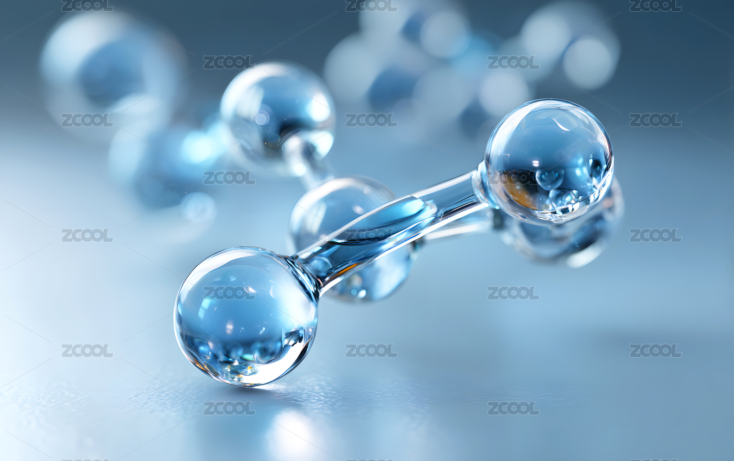 蓝色的干净的水滴玻璃球组成的甲烷CH4分子