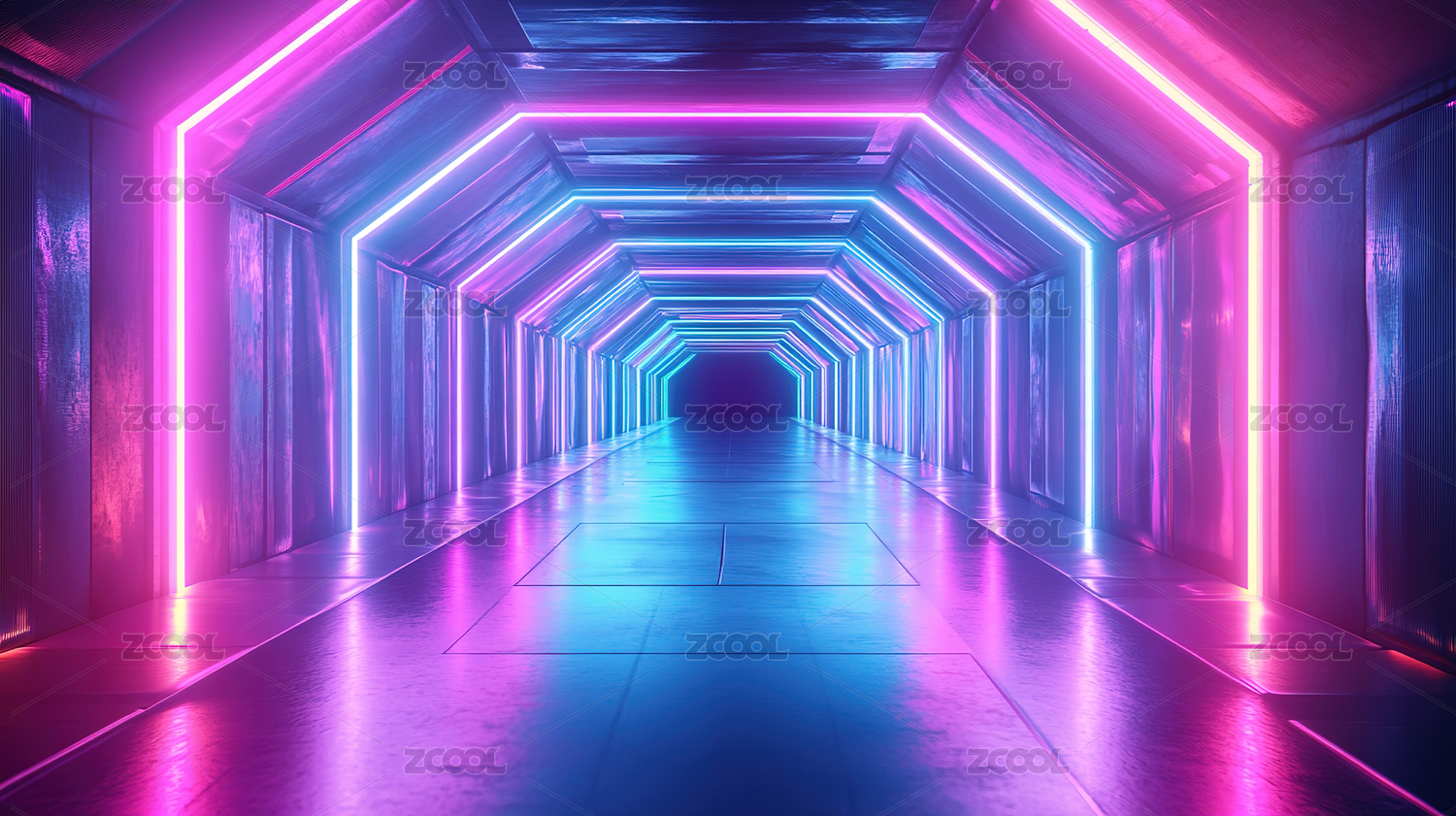科幻风格的霓虹灯走廊