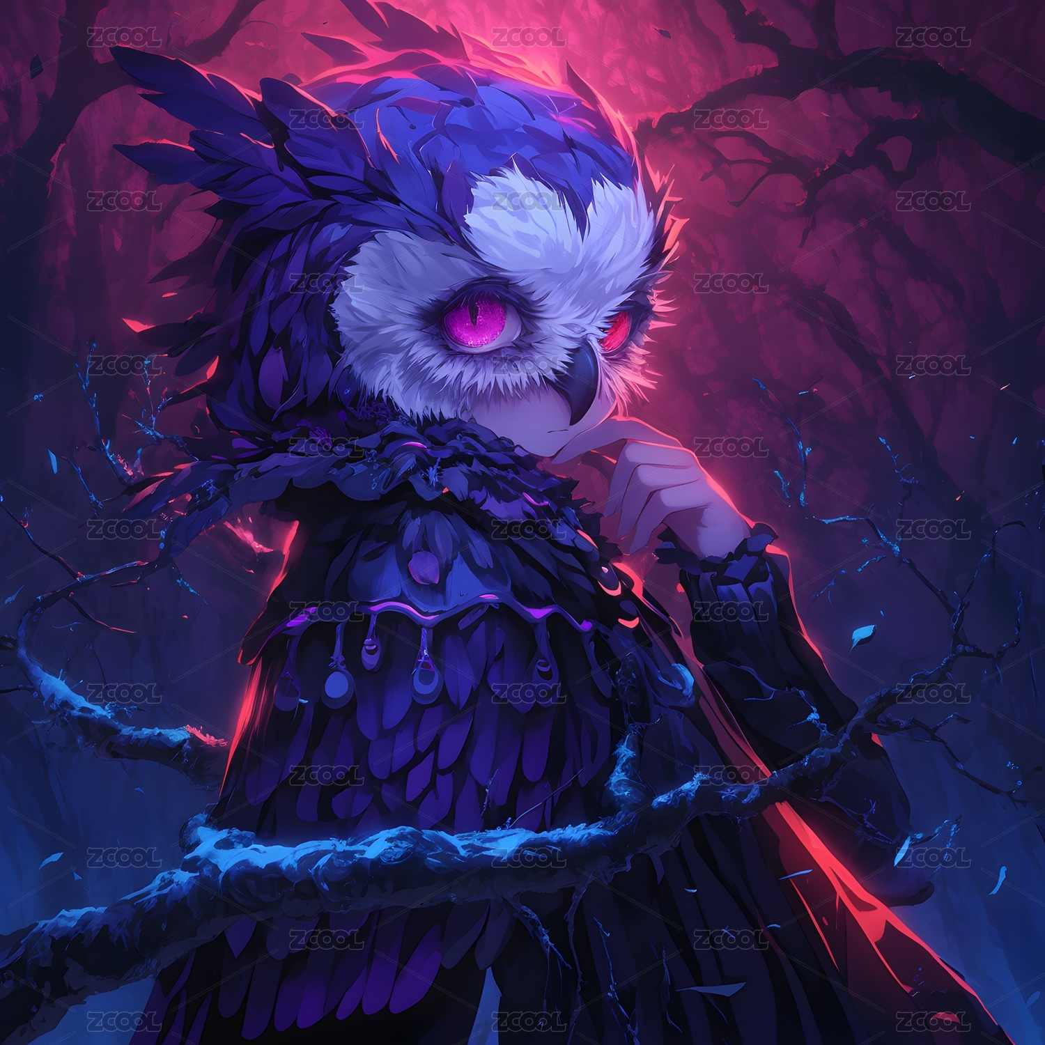 暗黑风格魔法姑娘带着神鸟插画壁纸