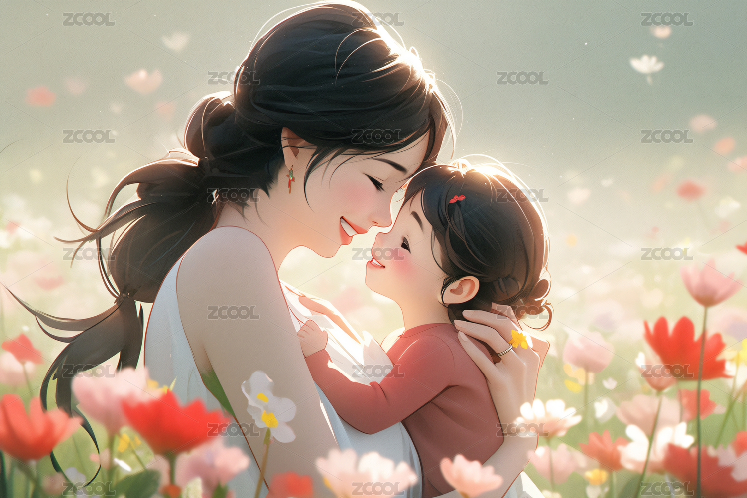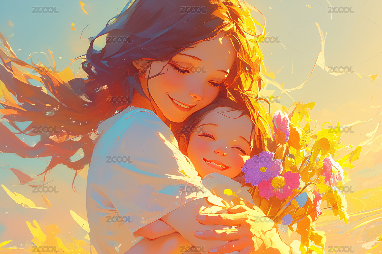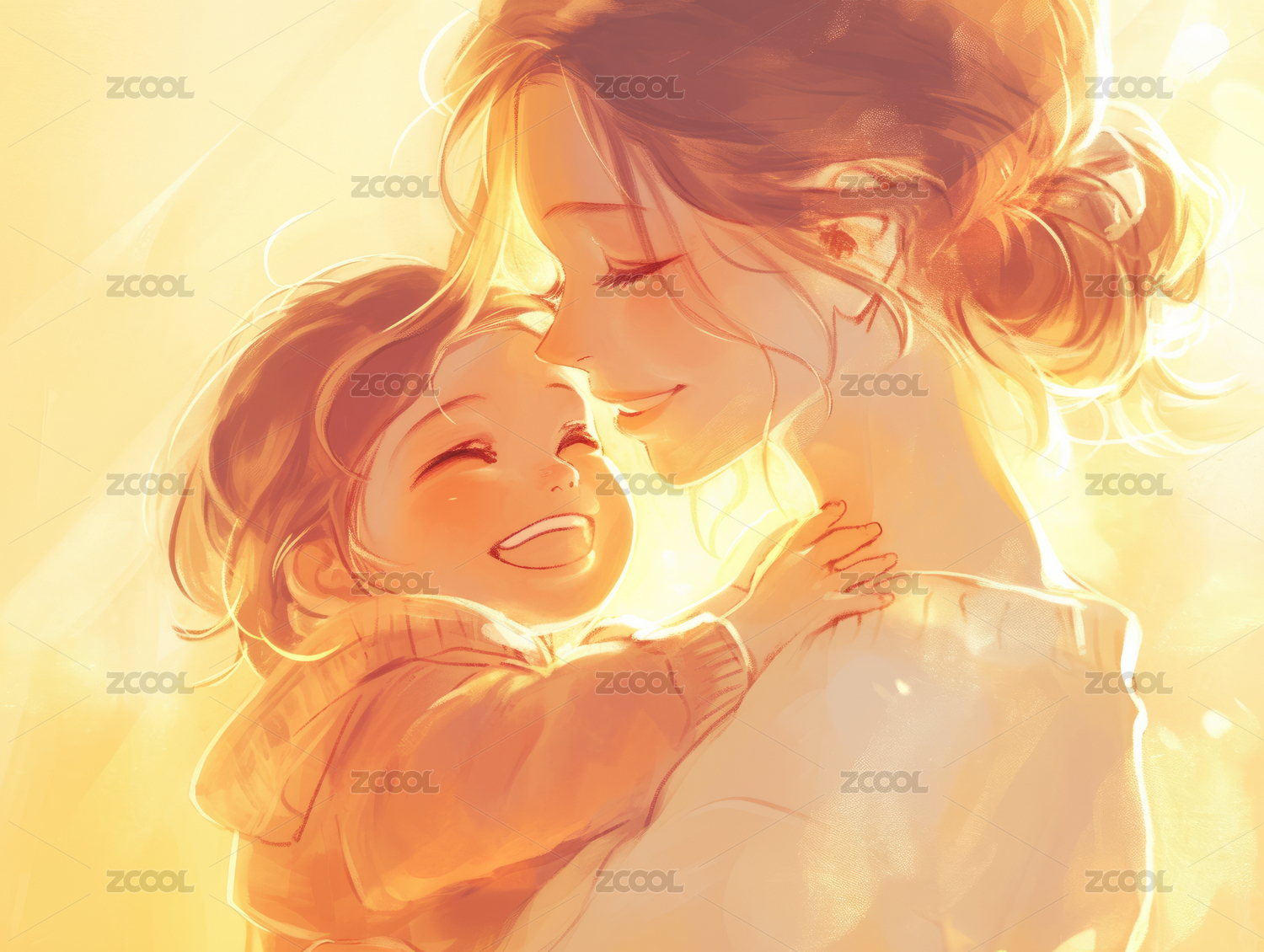 可爱风母亲拥抱孩子温馨场景,母亲节感恩节