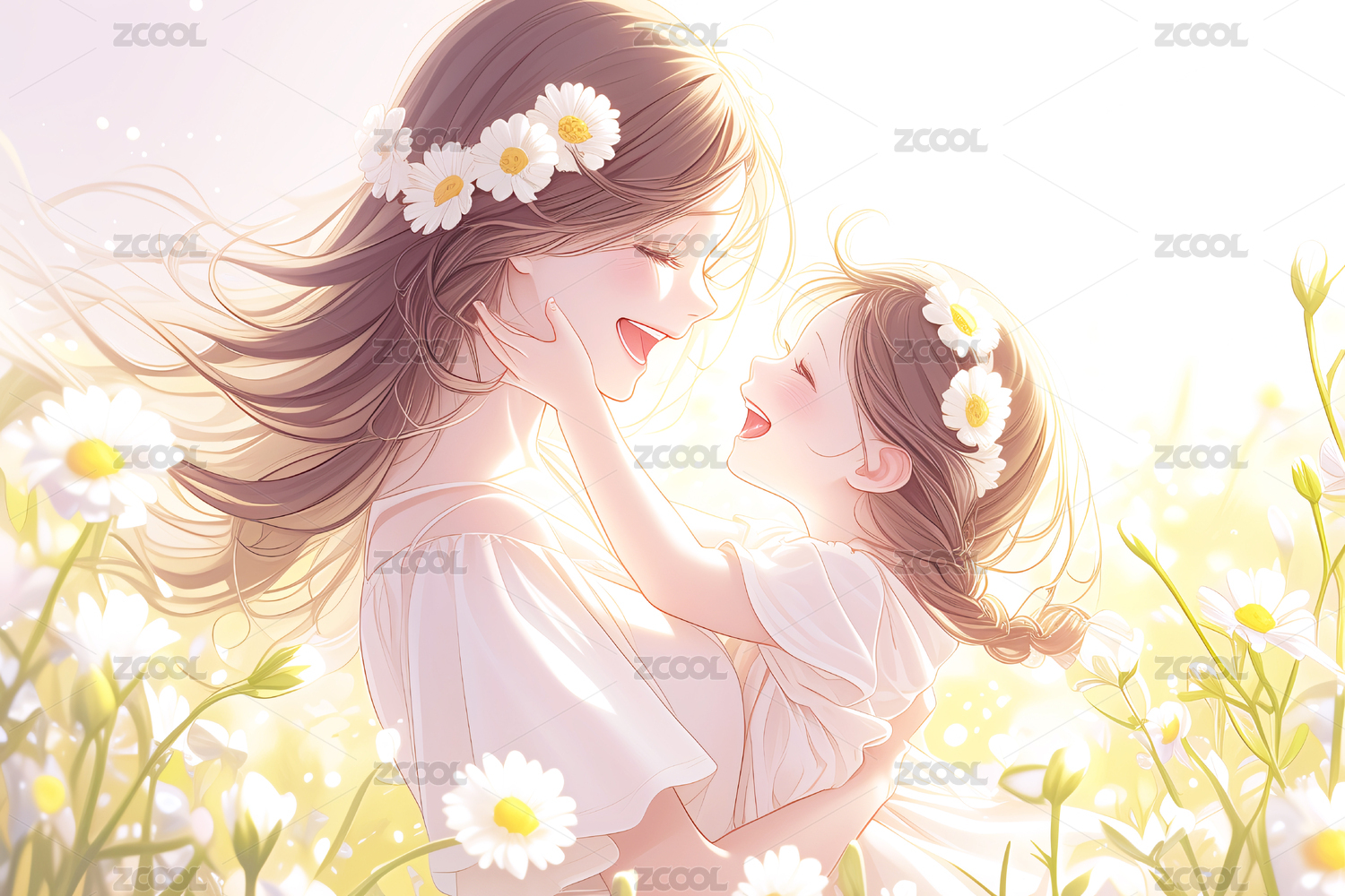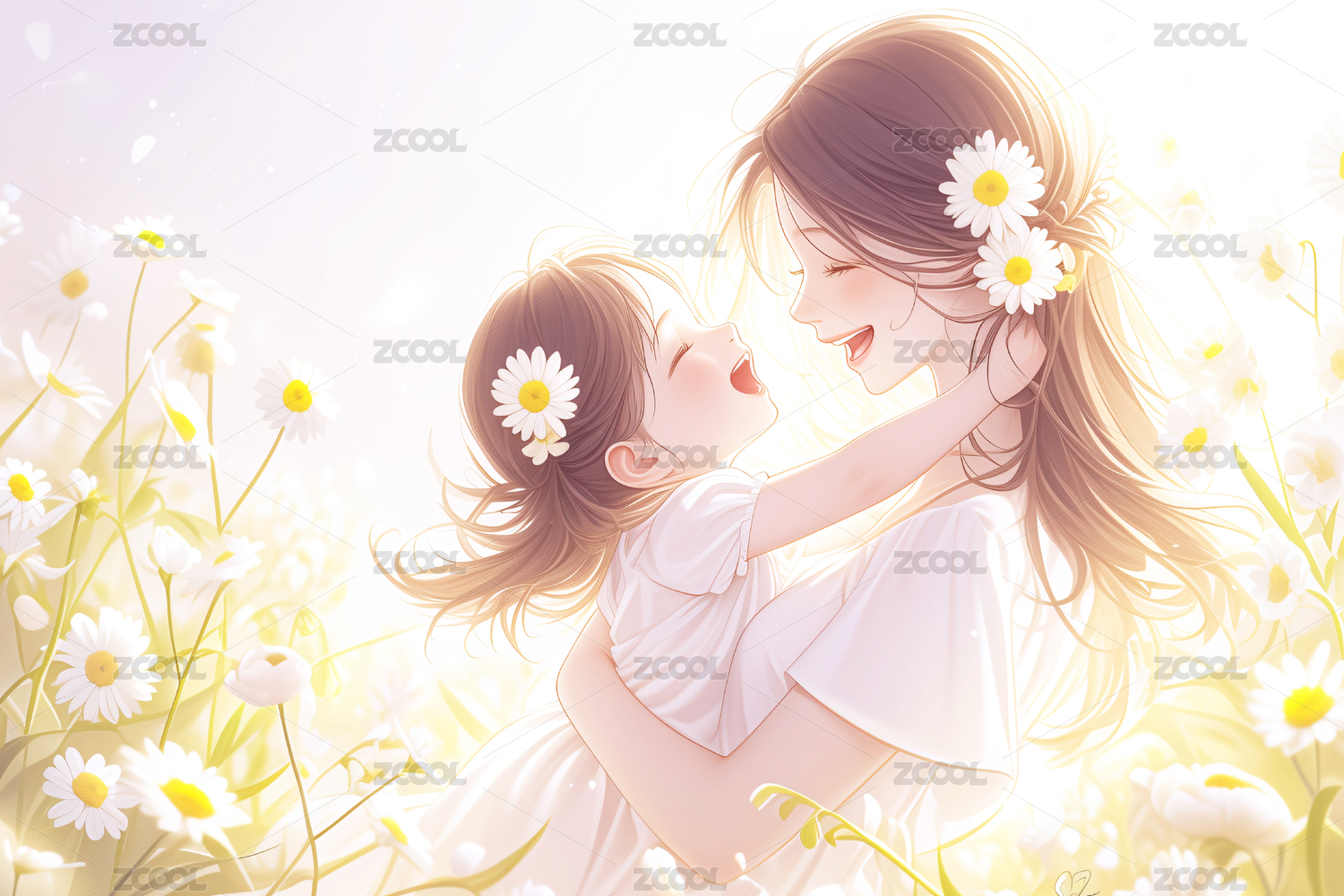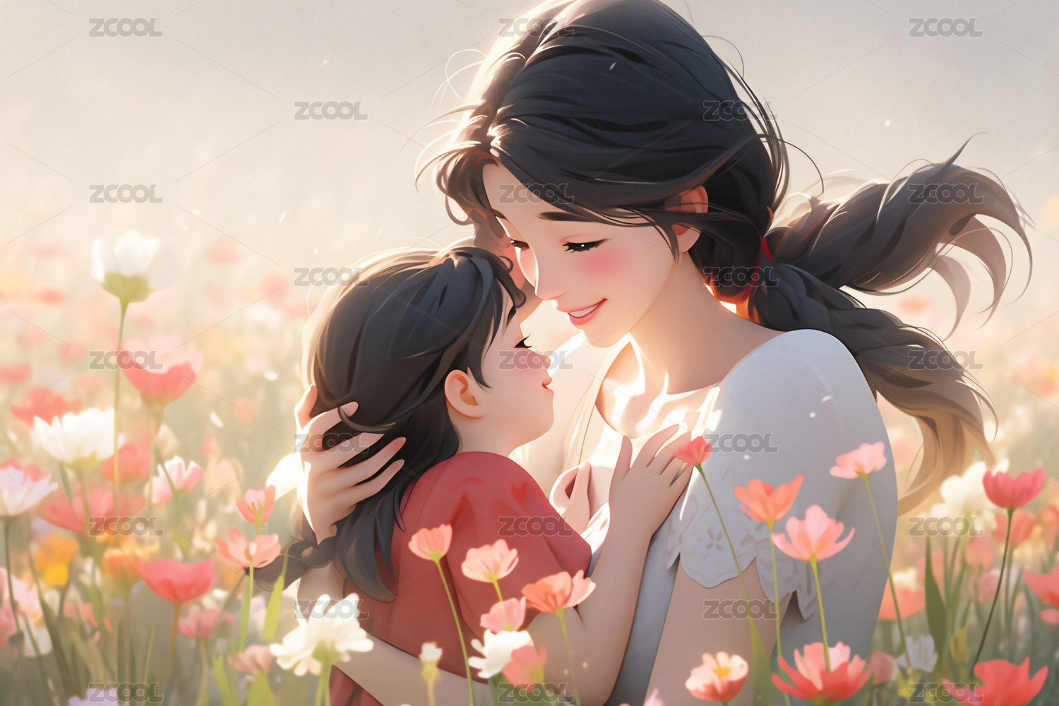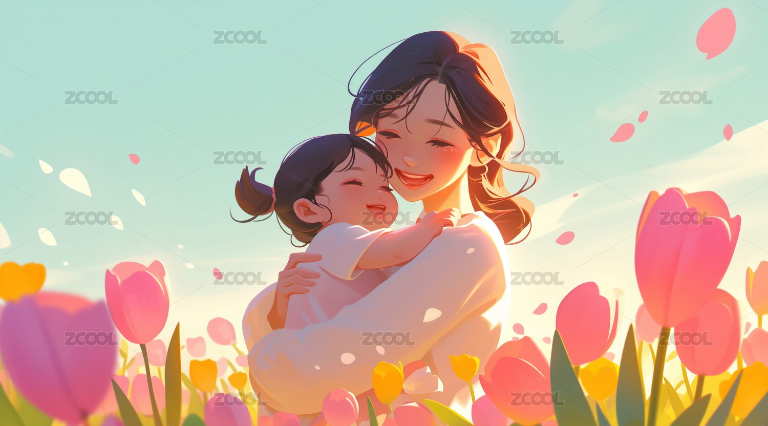 可爱风母亲拥抱孩子温馨场景,母亲节感恩节