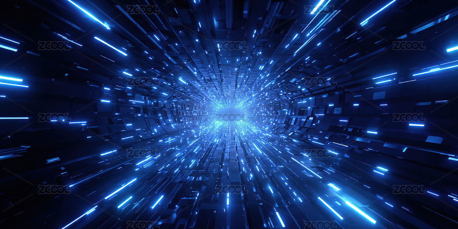无人,抽象,科学技术,未来,三维图形,蓝色,互联网,概念,隧道,AI数字艺术
