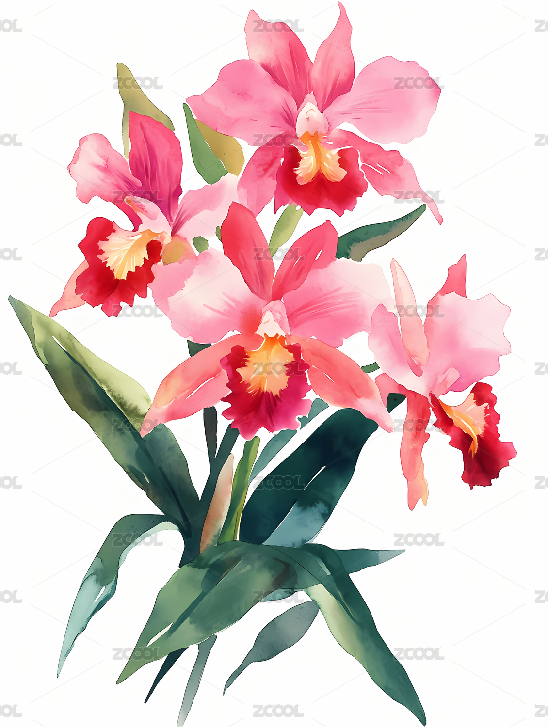 水墨古风百合花国画无骨花鸟图案装饰画设计