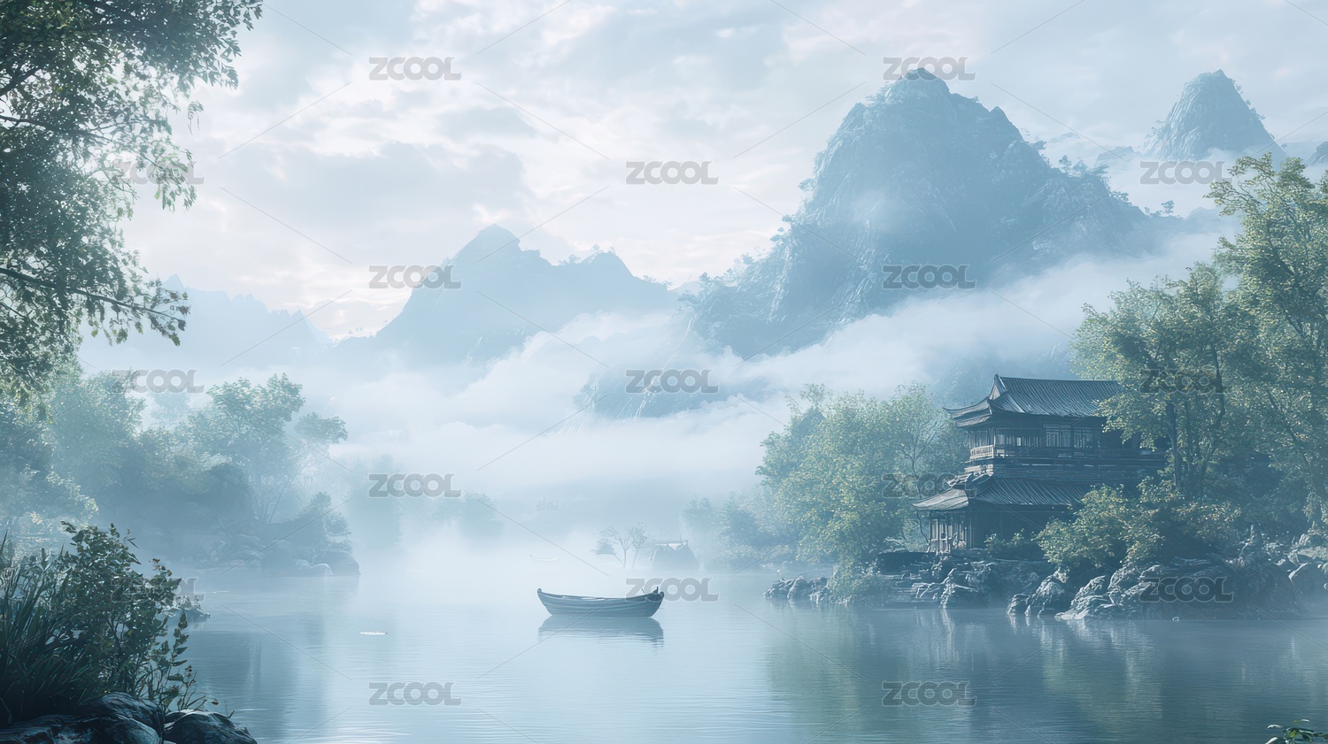 无人,风景,地形,宁静,AI数字艺术,天空,自然美,云,水,树