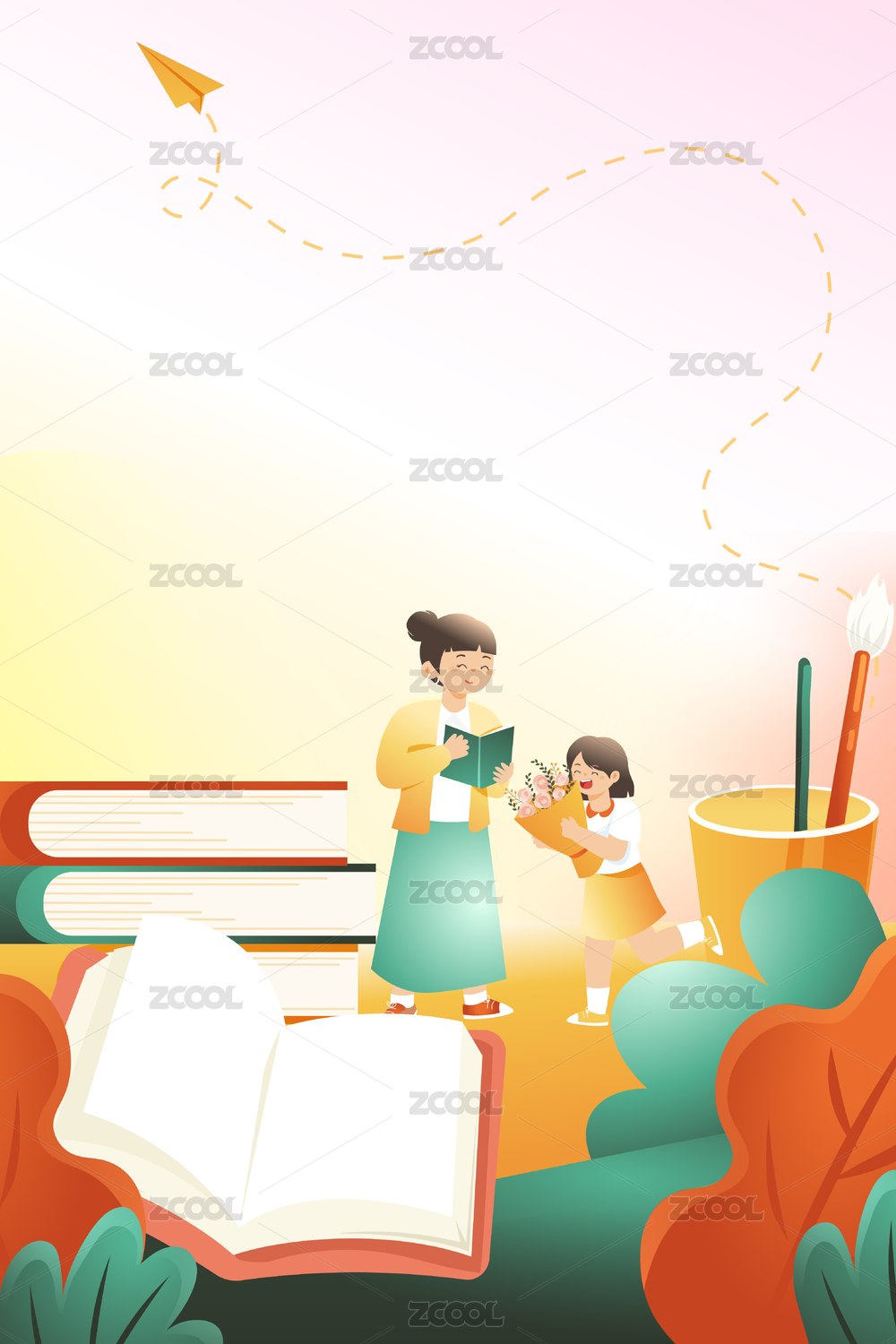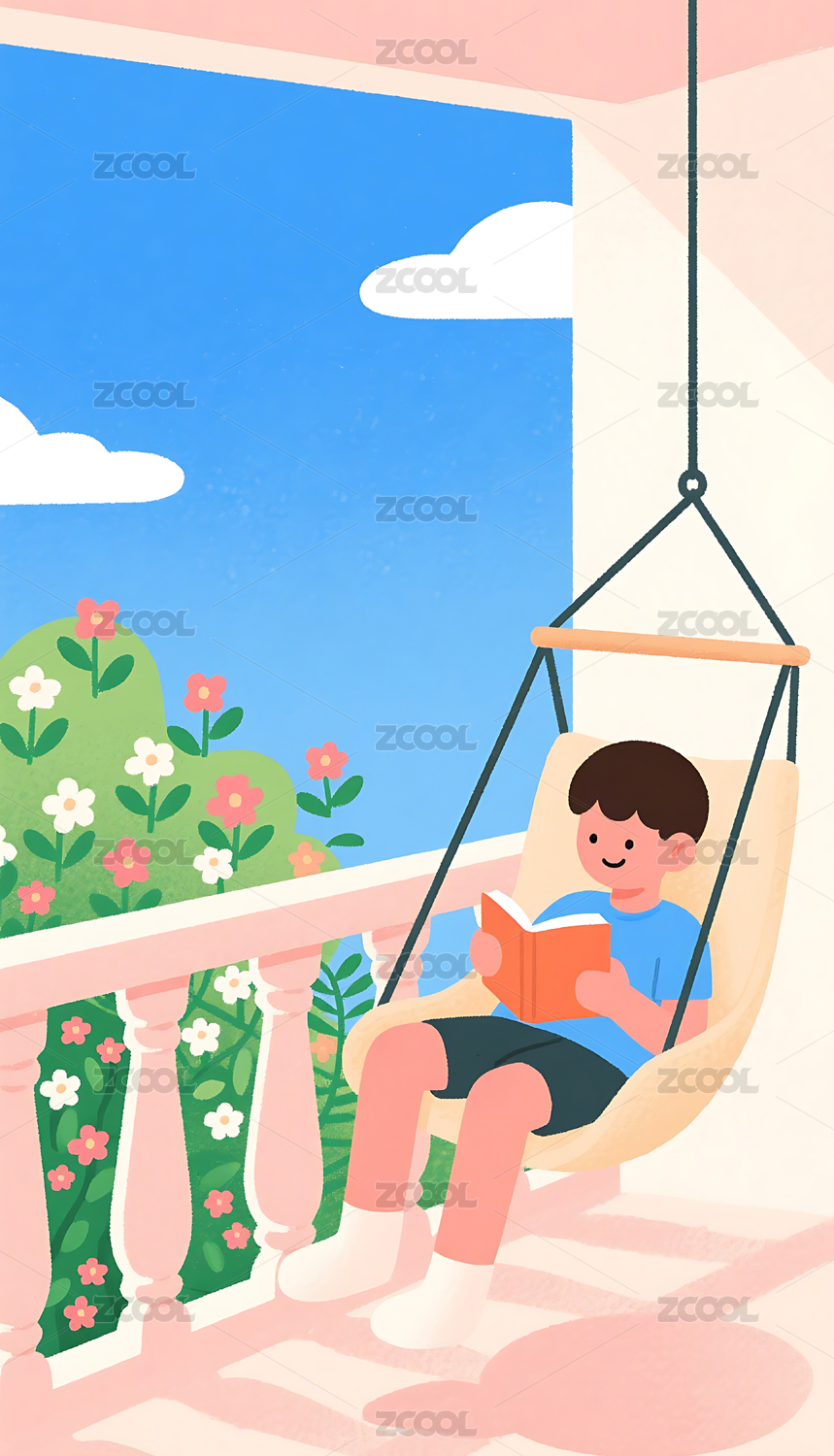 六一儿童节读书开学荡秋千竖版无字矢量插画