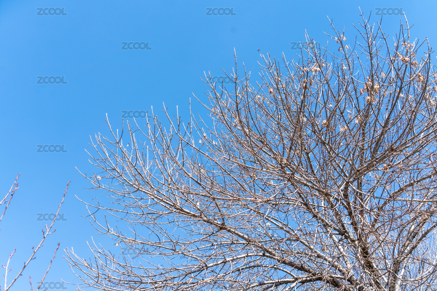 蓝天下的枯树枝