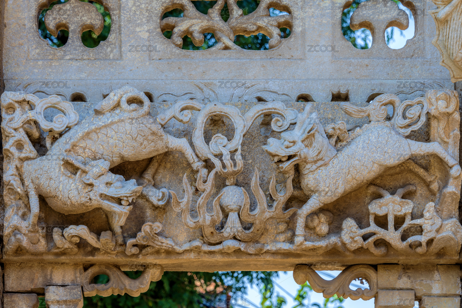 中国古建筑四合院目前的雕花石墩