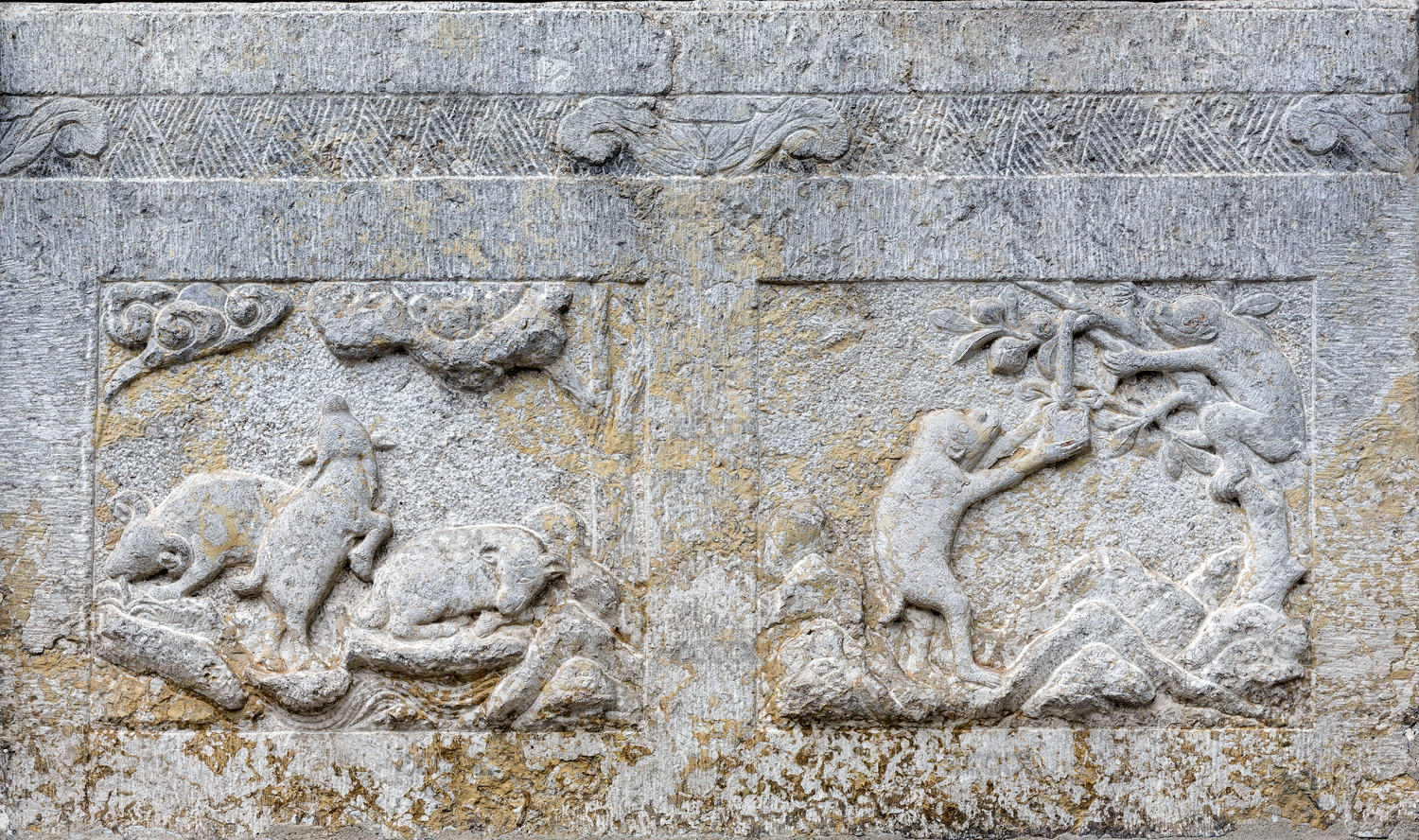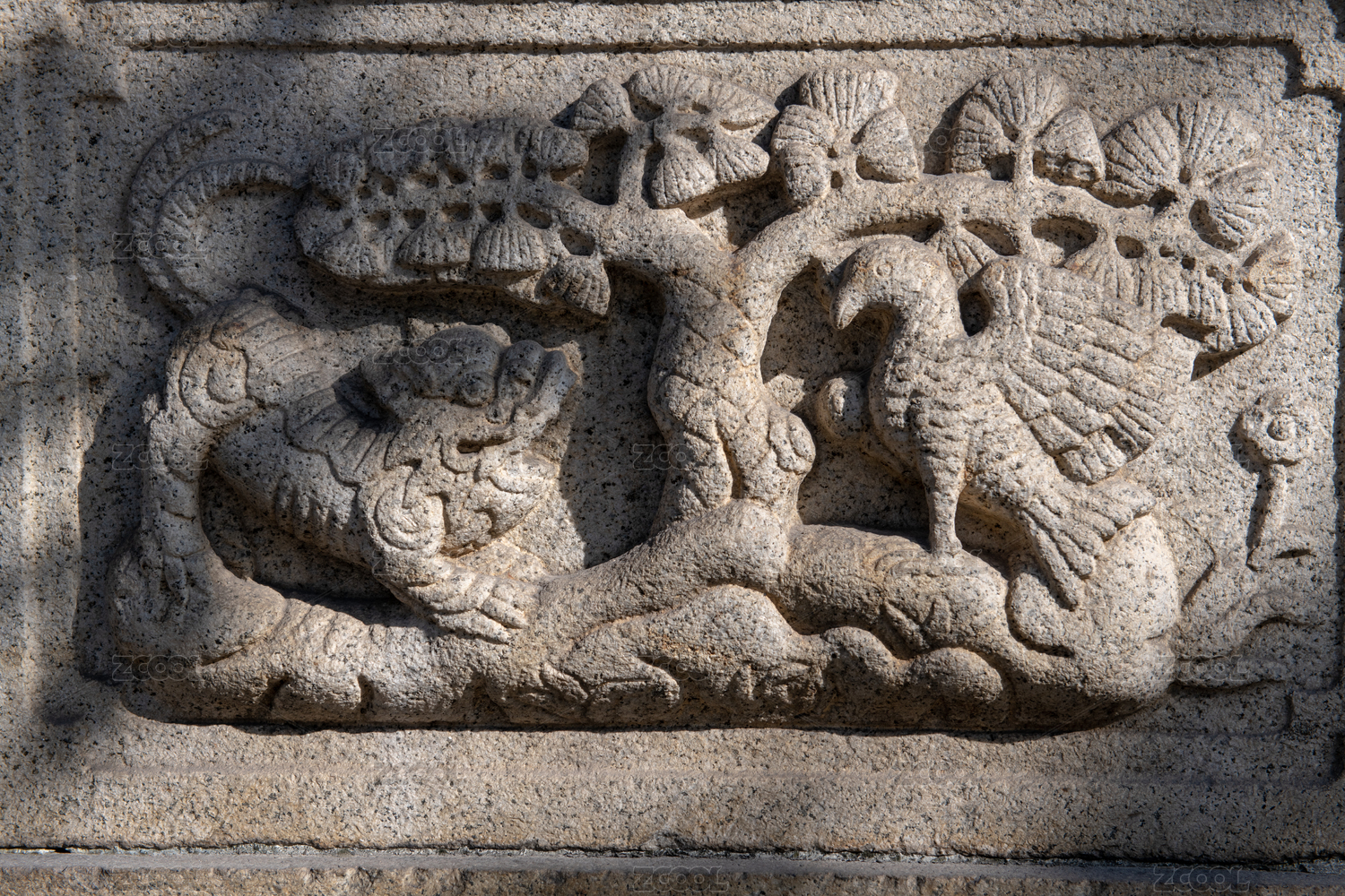 中国山西省运城市解州关帝庙石栏鹤鹿石雕