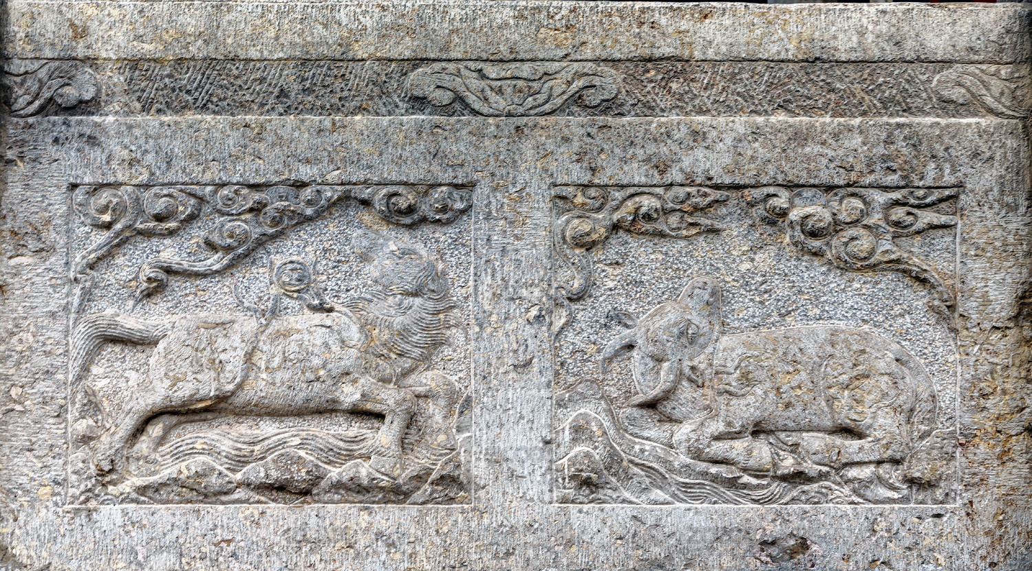中国山西省运城市解州关帝庙石栏动物石雕