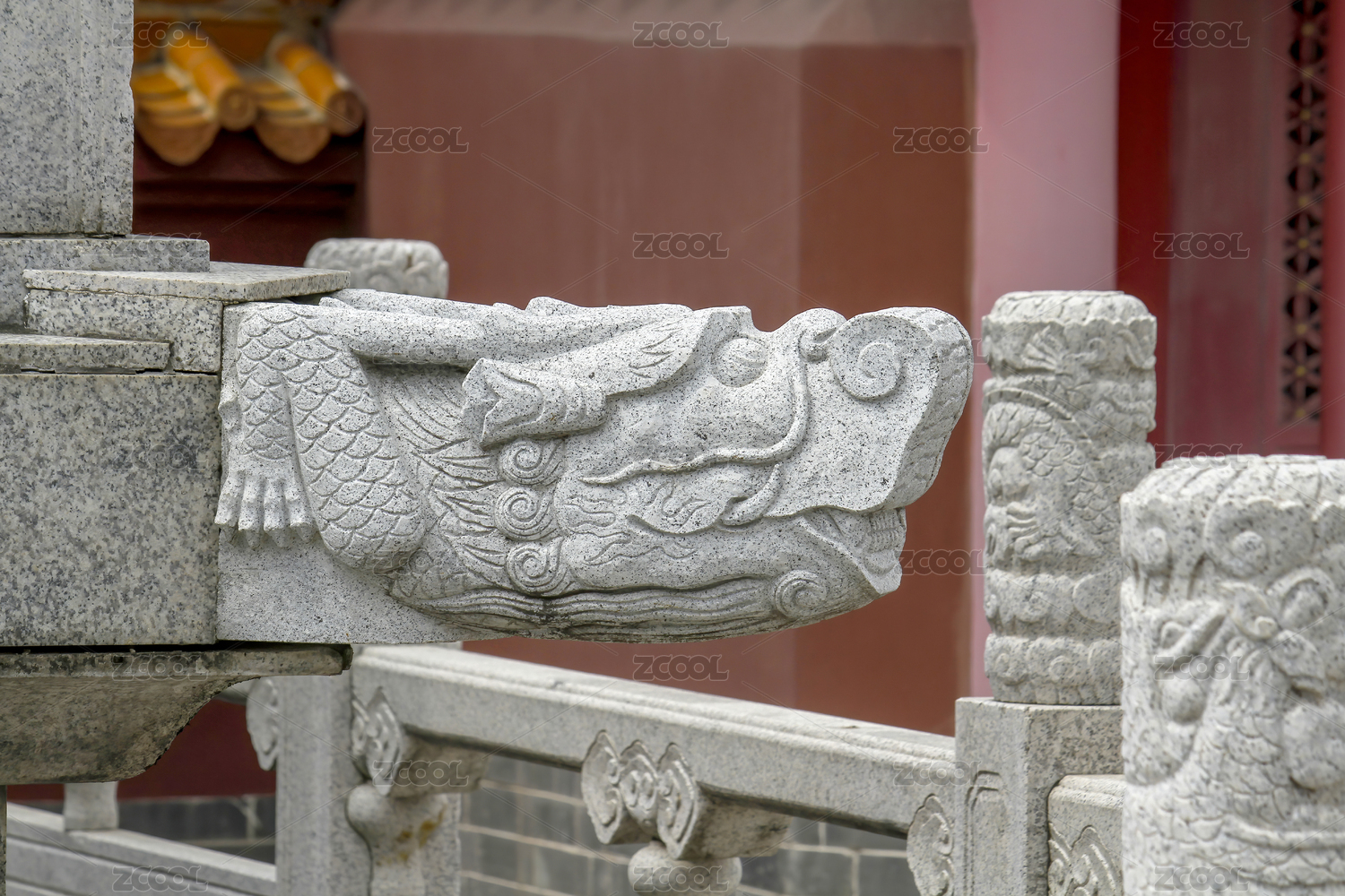 中国山西省运城市解州关帝庙石栏龙纹石雕