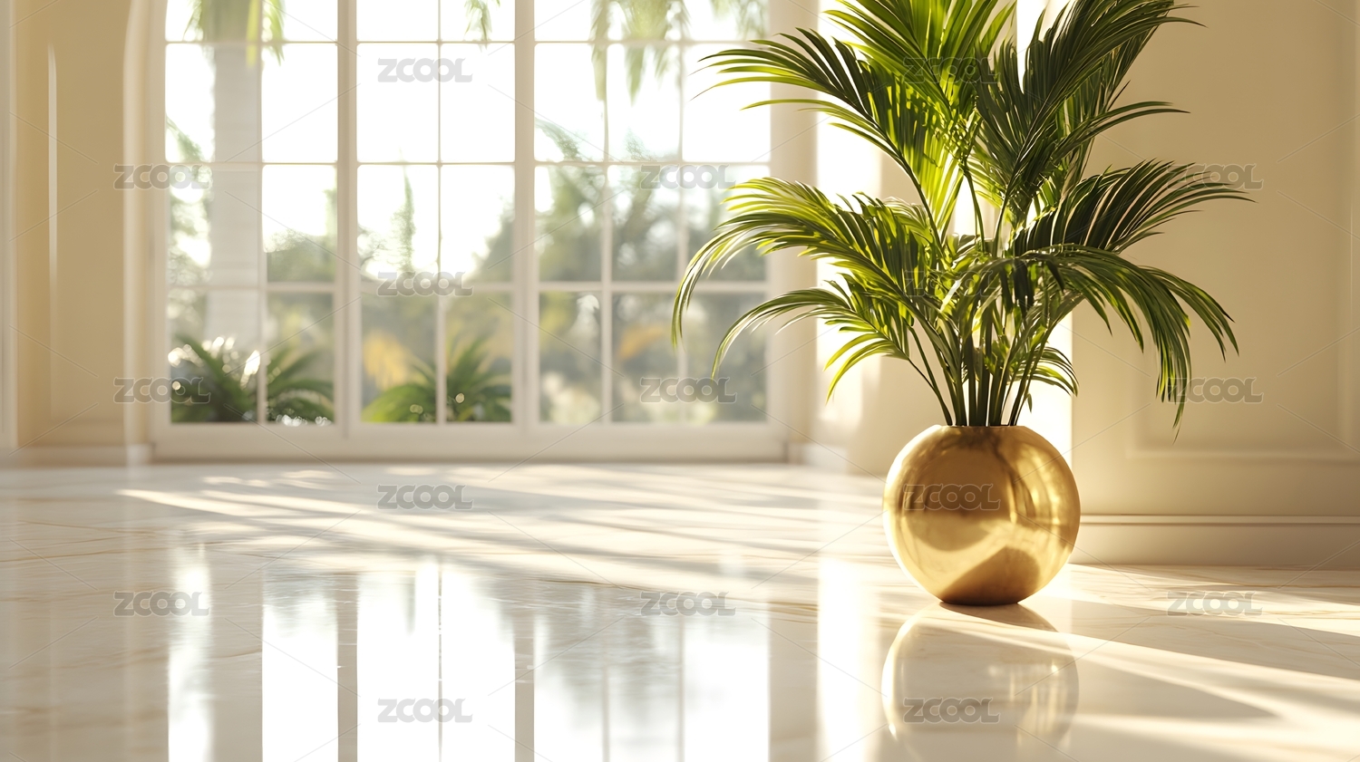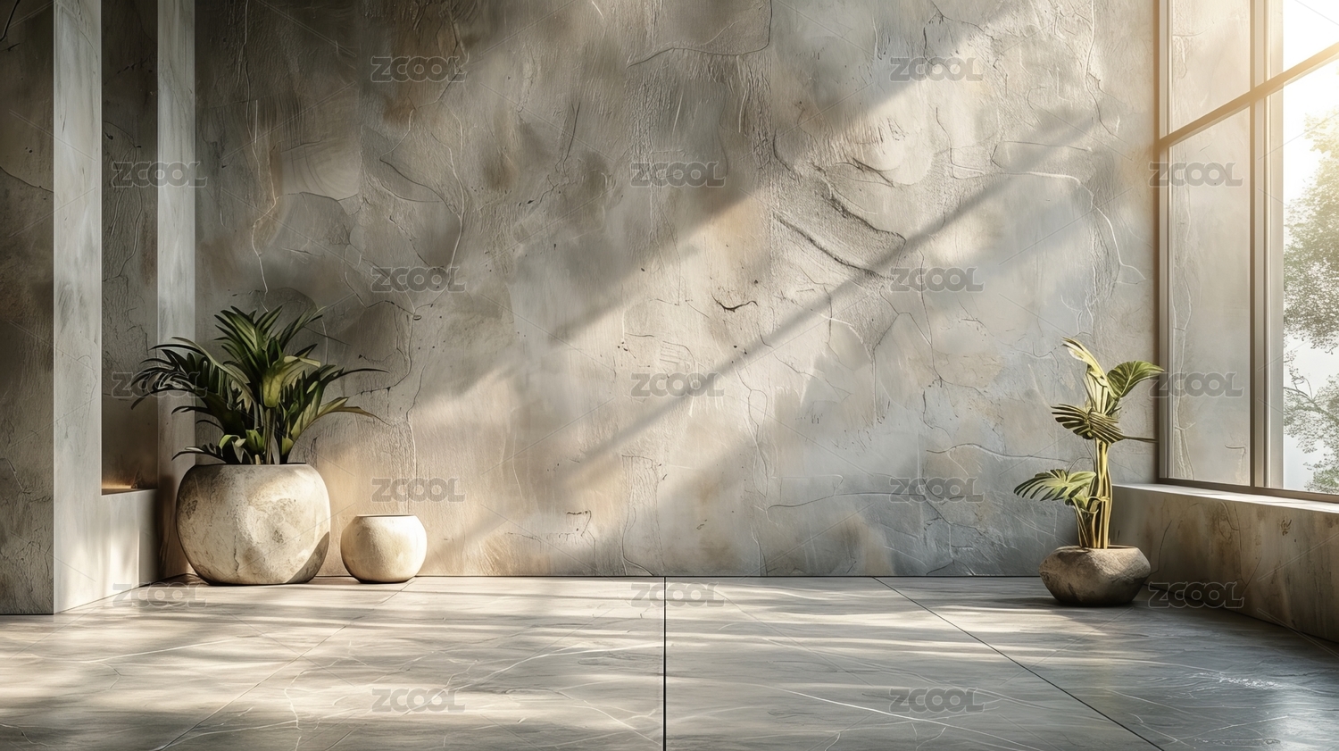 干净的室内白墙和绿植装饰简约空白渲染背景